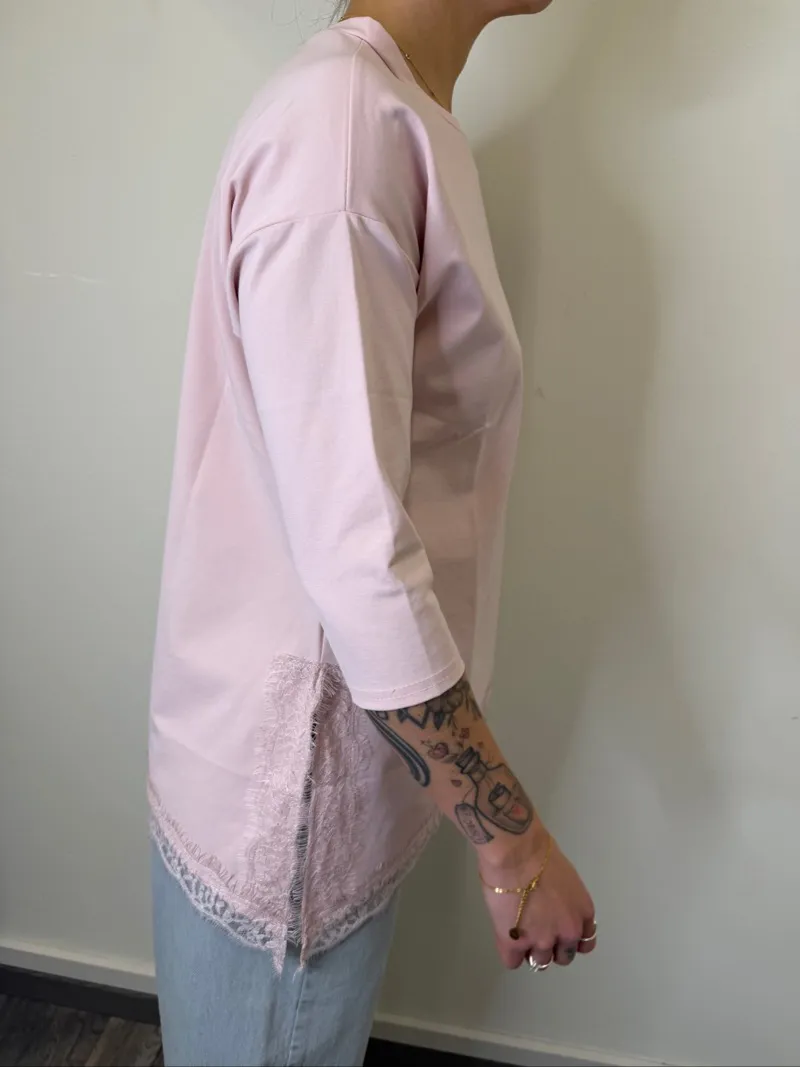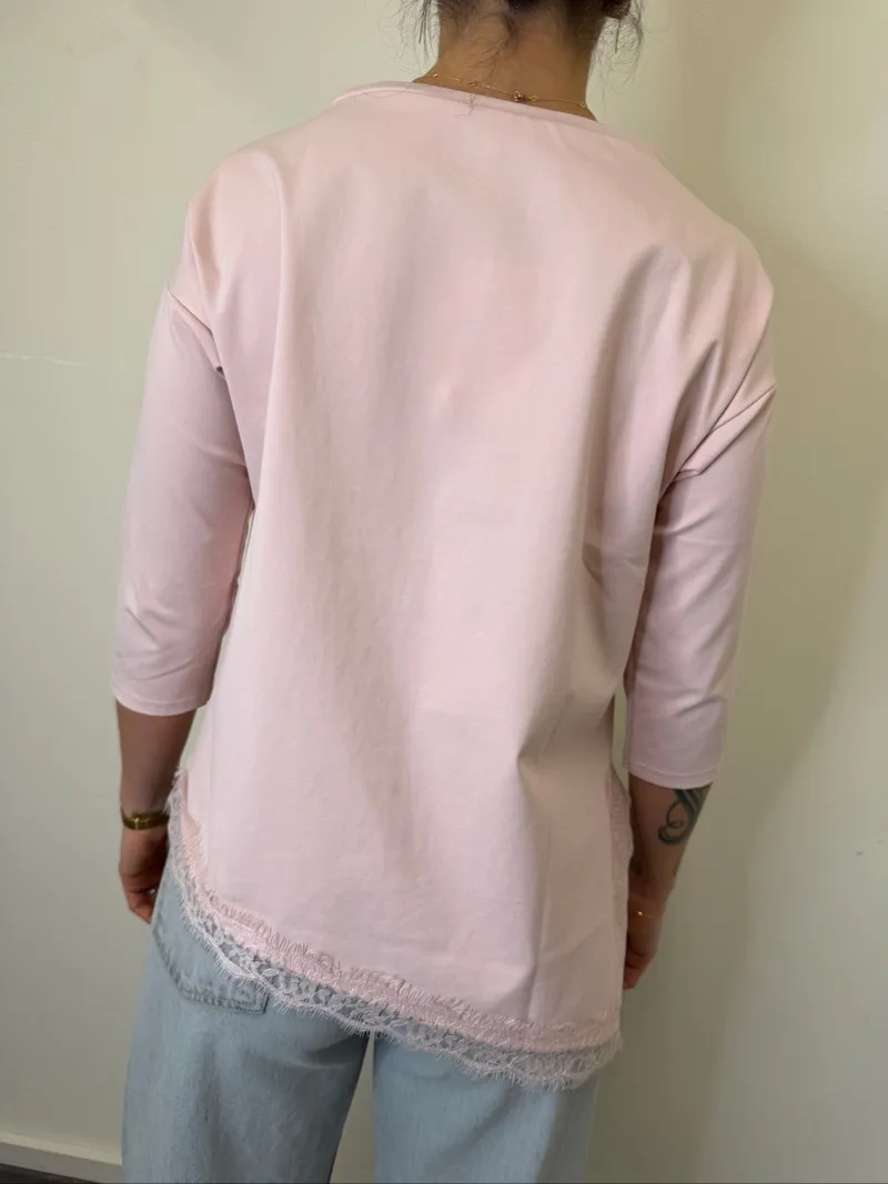 MAGLIA ASIMMETRICA CON PIZZO ROSA SUSYMIX