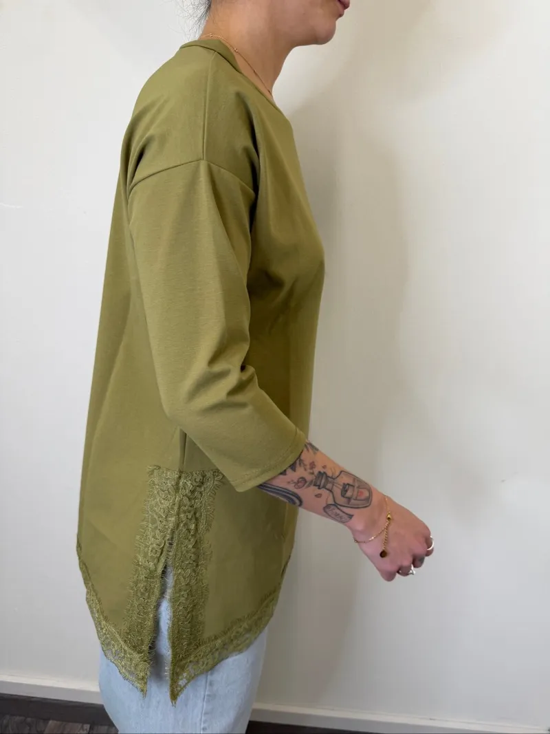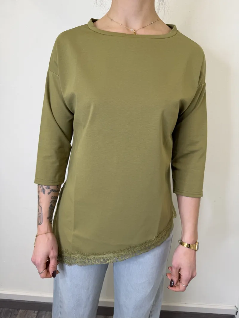MAGLIA ASIMMETRICA CON PIZZO VERDE OLIVA SUSYMIX