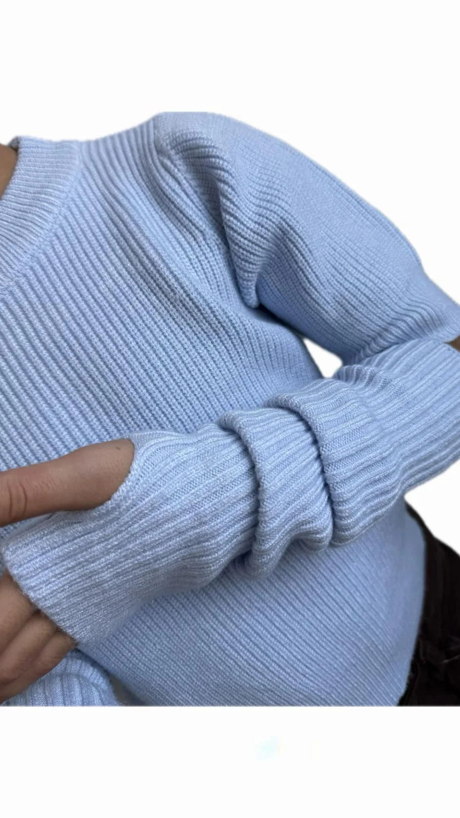 Maglia moderna e raffinata dal design originale, caratterizzata da maniche apribili che donano un tocco di stile unico e alla moda. Il colore azzurro pastello la rende delicata e facile da abbinare, perfetta per la scuola, le uscite e le occasioni casual. La vestibilità è regolare, leggermente aderente sul busto, per un look comodo ma curato in ogni dettaglio.
