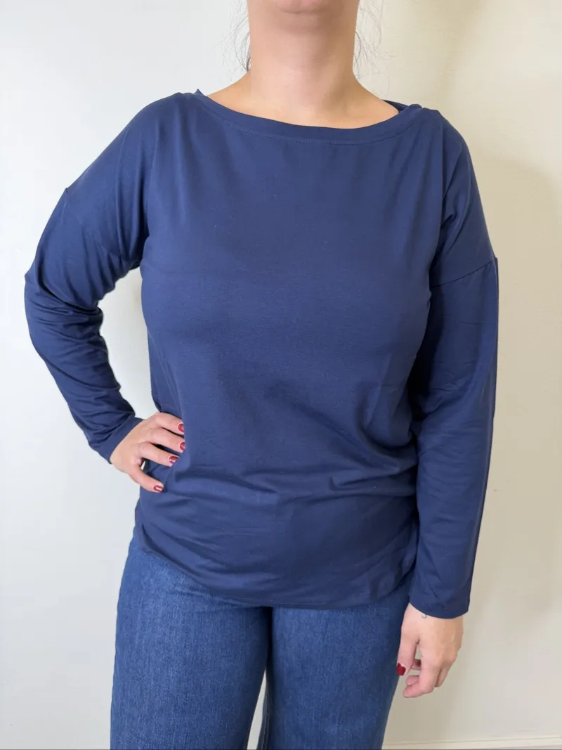 maglia manica lunga con scollo a barchetta