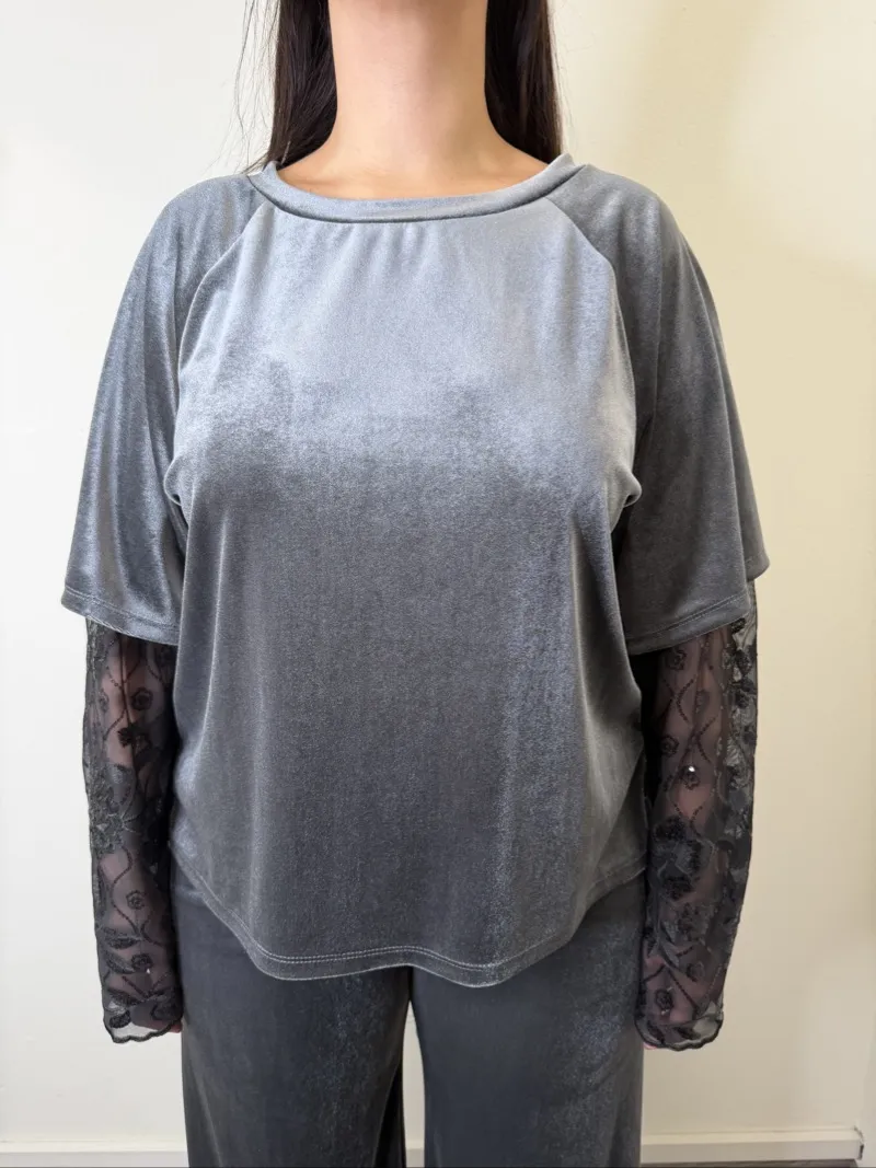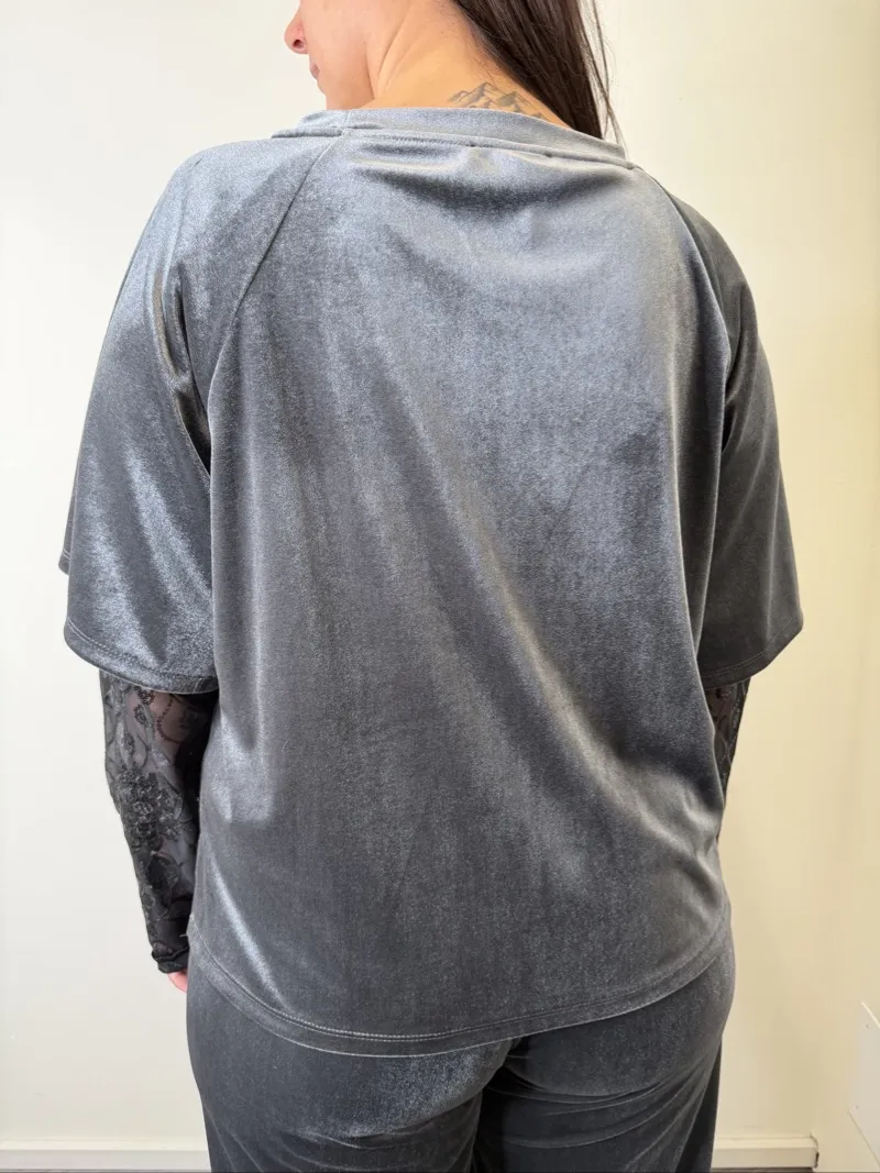 MAGLIA CINIGLIA GRIGIO MANICA PAILLETTES SUSYSTAR