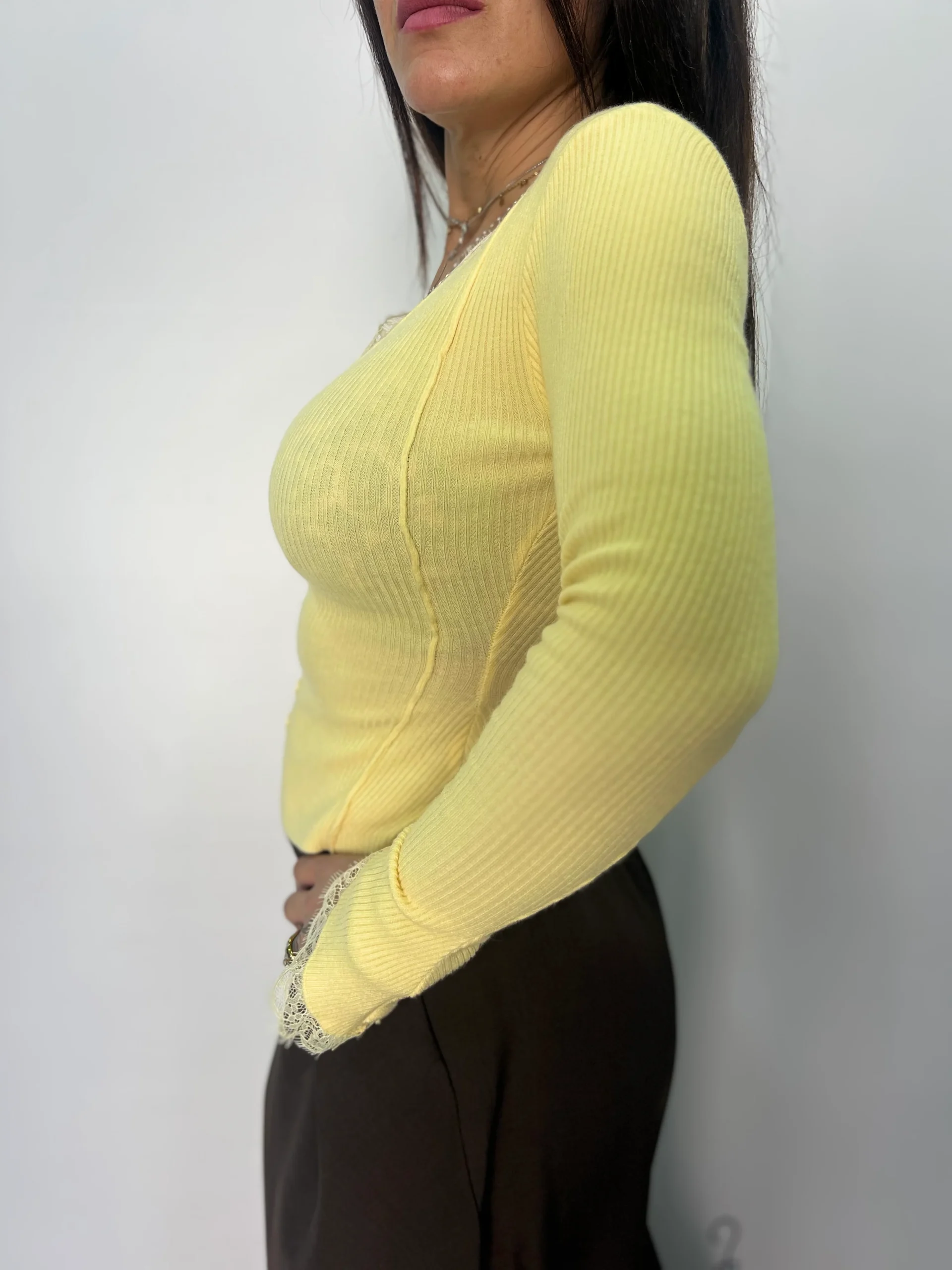 Maglia donna a costine con pizzo elegante