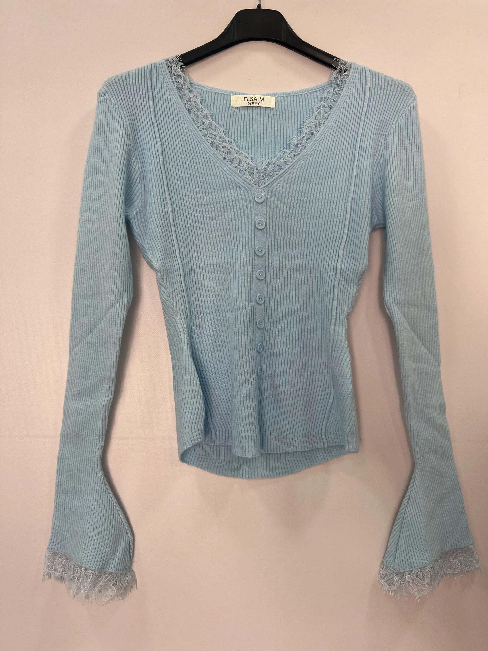 Maglia in Costina con Pizzo e Bottoni
