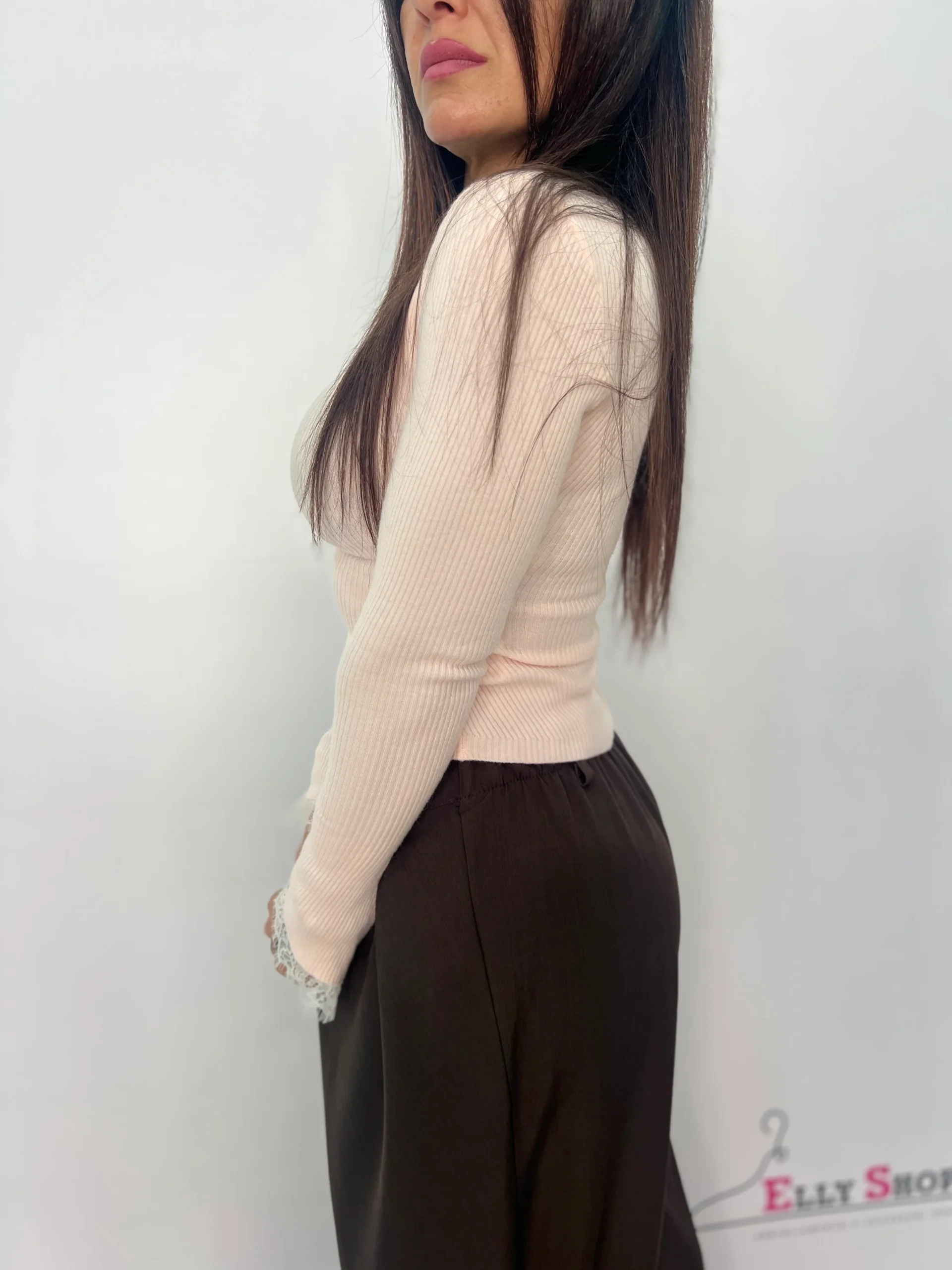 Tipo: Maglia donna a costine con pizzo