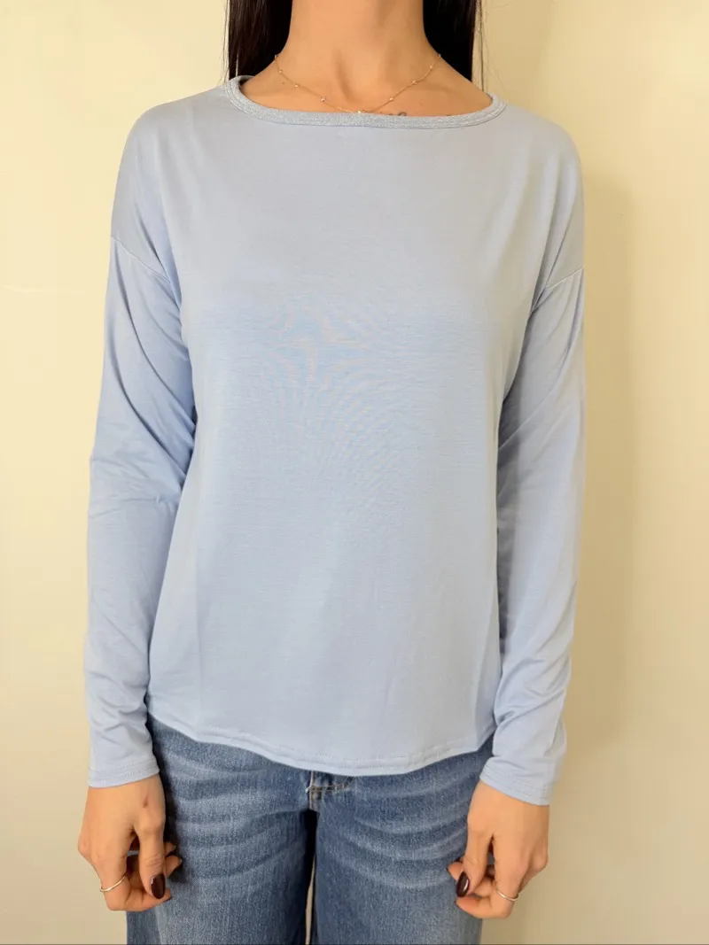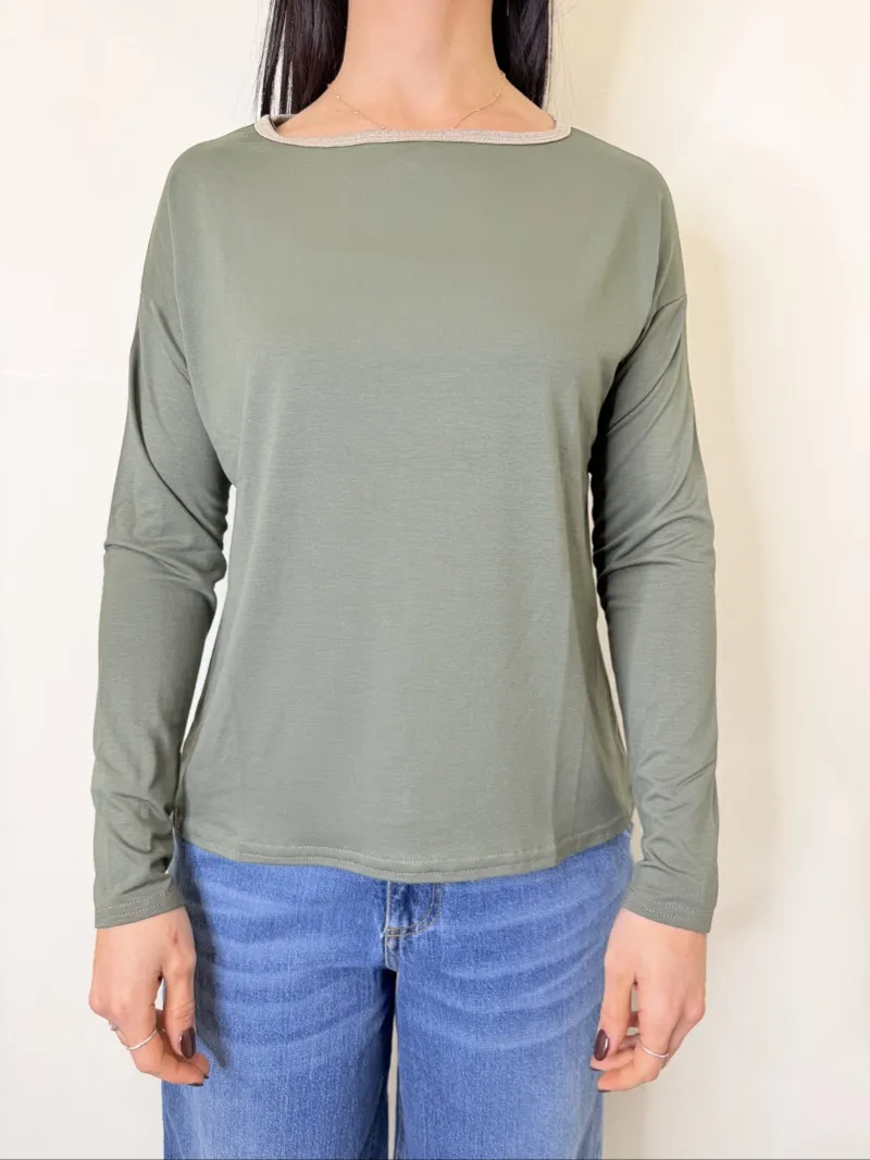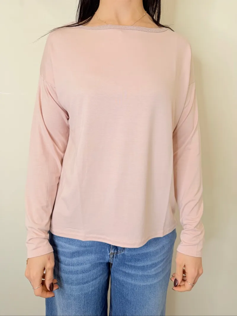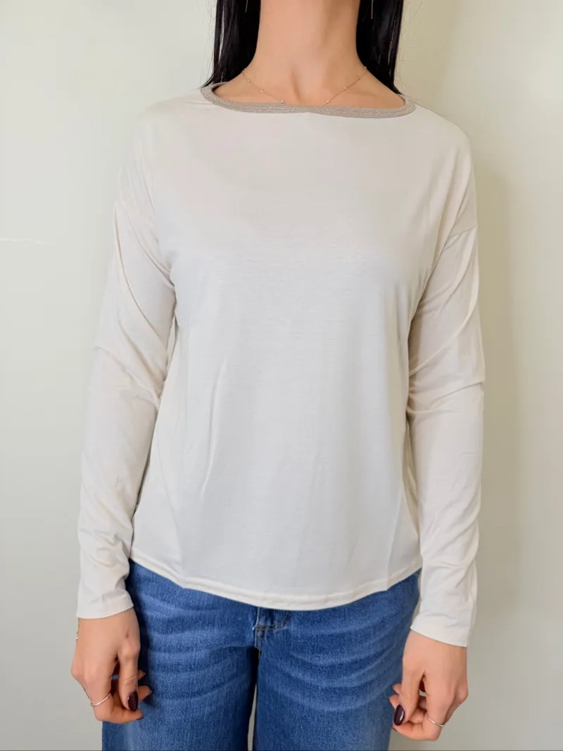 Maglia Elasticizzata Maniche Lunghe con Scollo Barchetta lurex – TAGLIA UNICA SLIM FIT