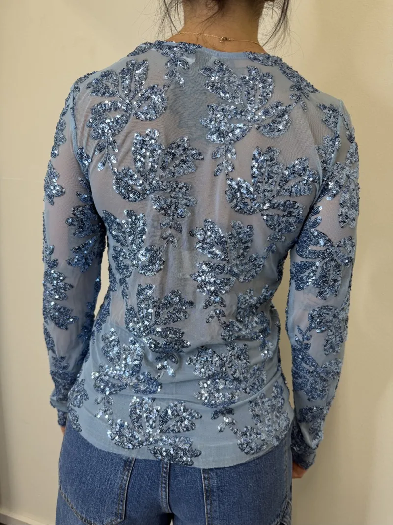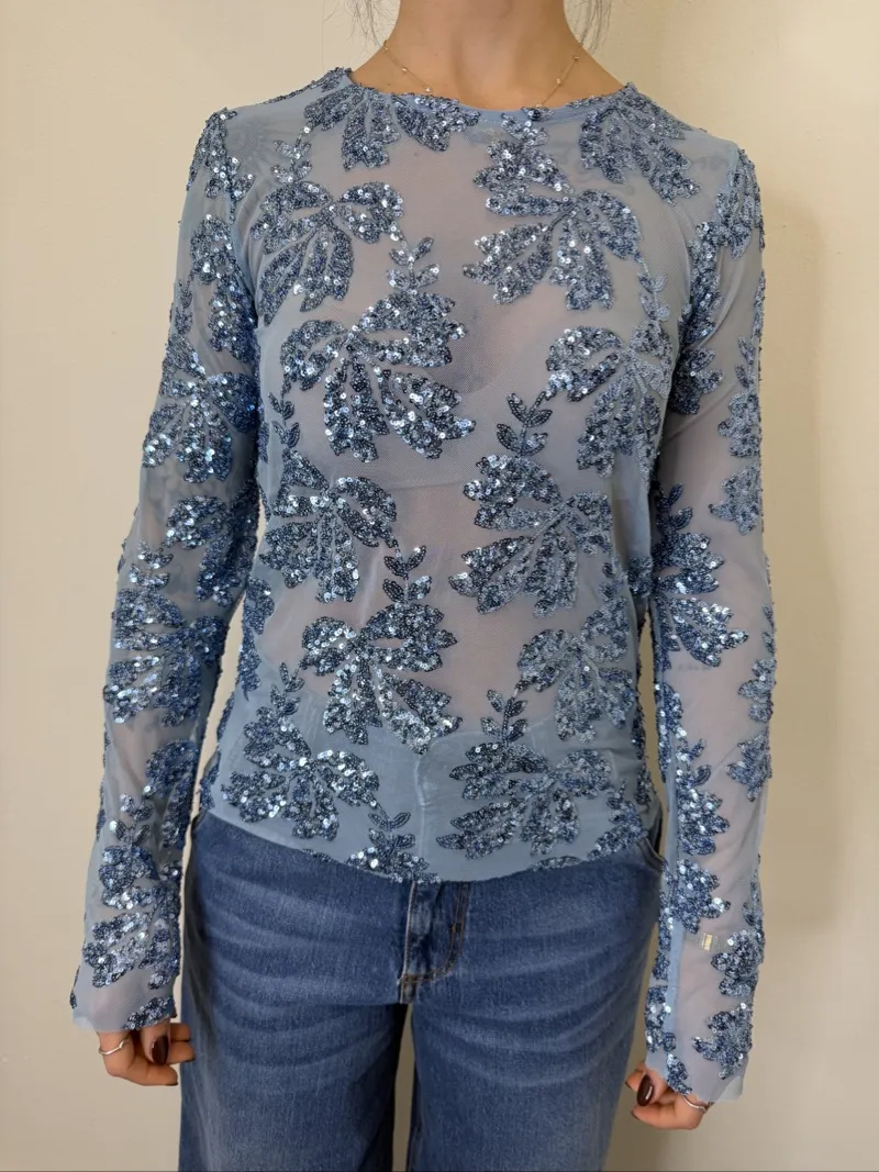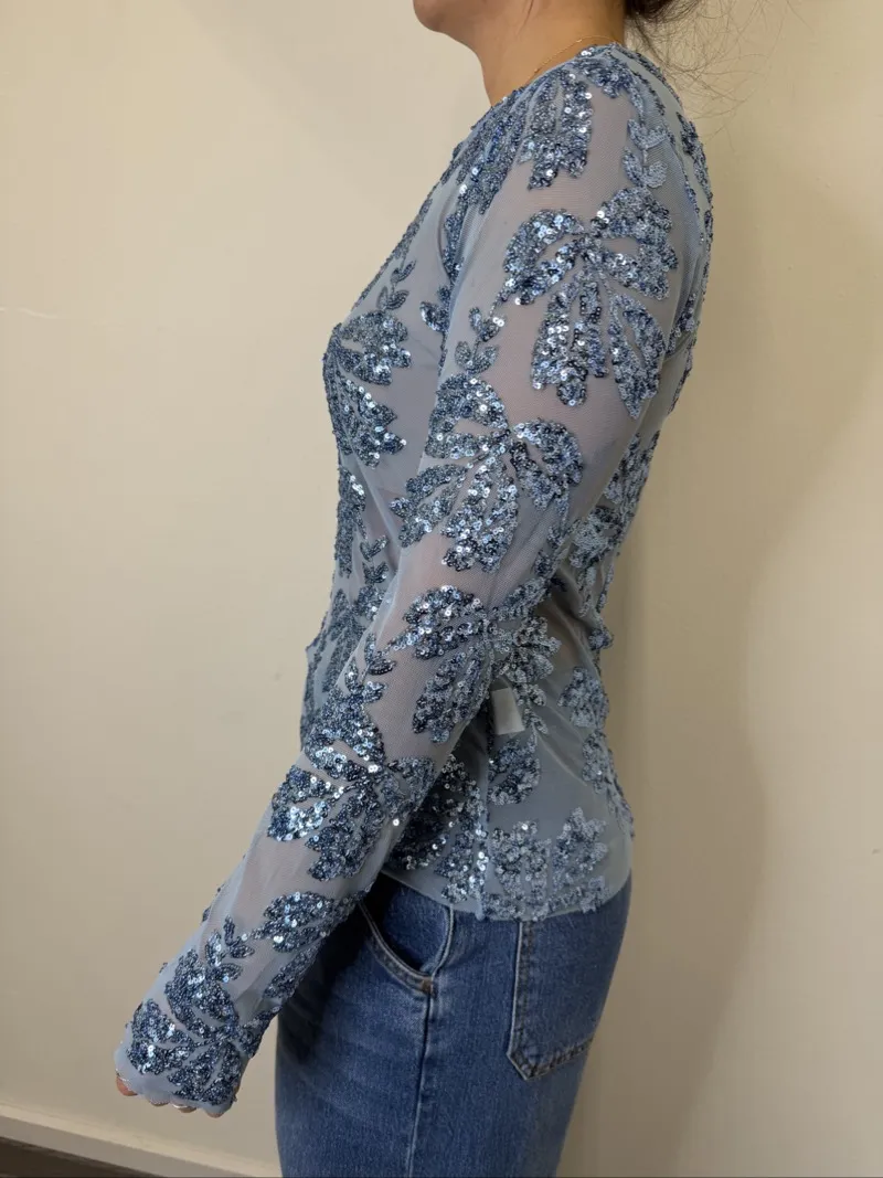 Maglia slim fit in paillettes semi trasparente taglia unica.