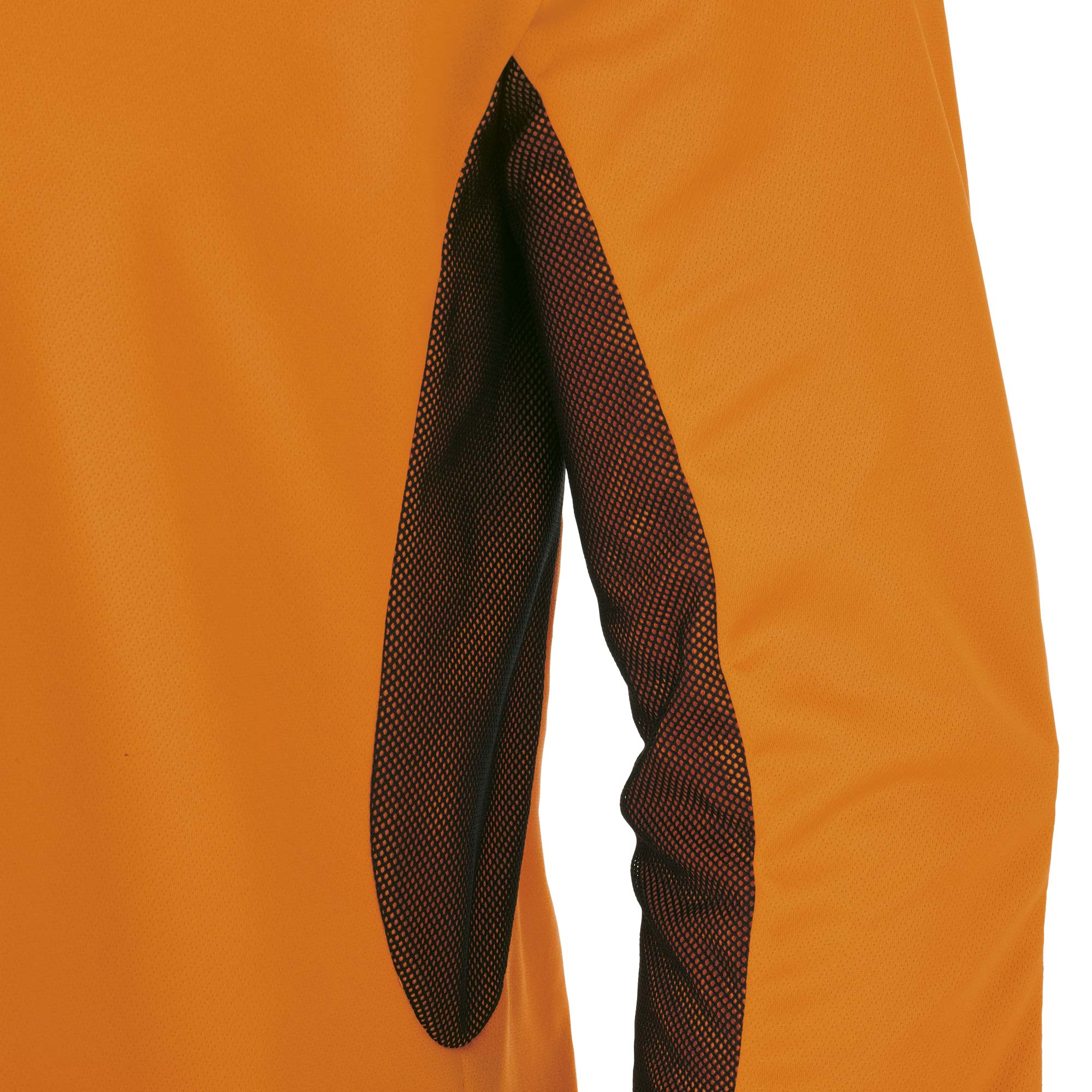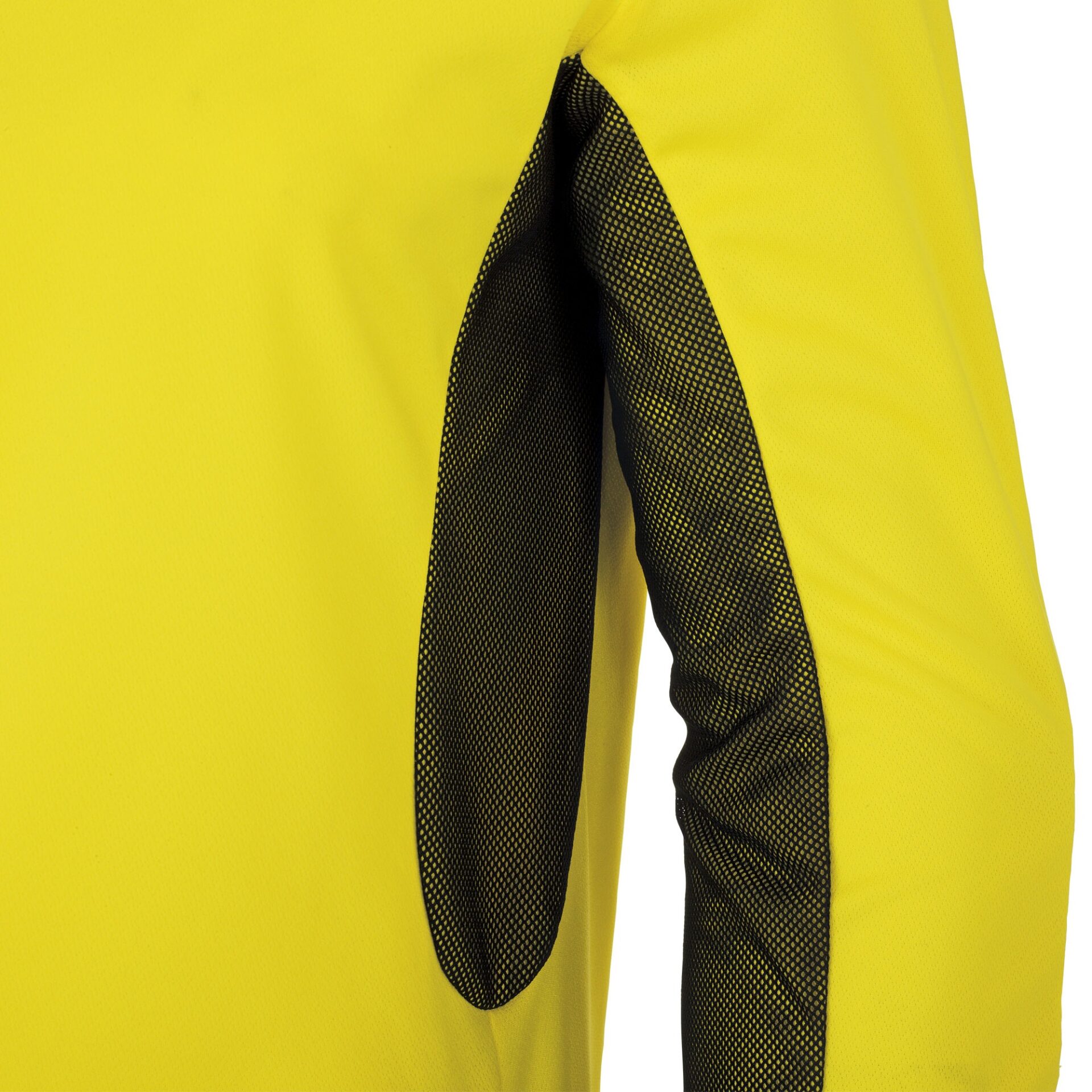 Maglia portiere manica a giro con imbottitura e polsino smacchinato. Collo a giro con parasudore interno elastico. Inserto laterale con doppio tessuto Mesh + Mundial. Vestibilità normale.
