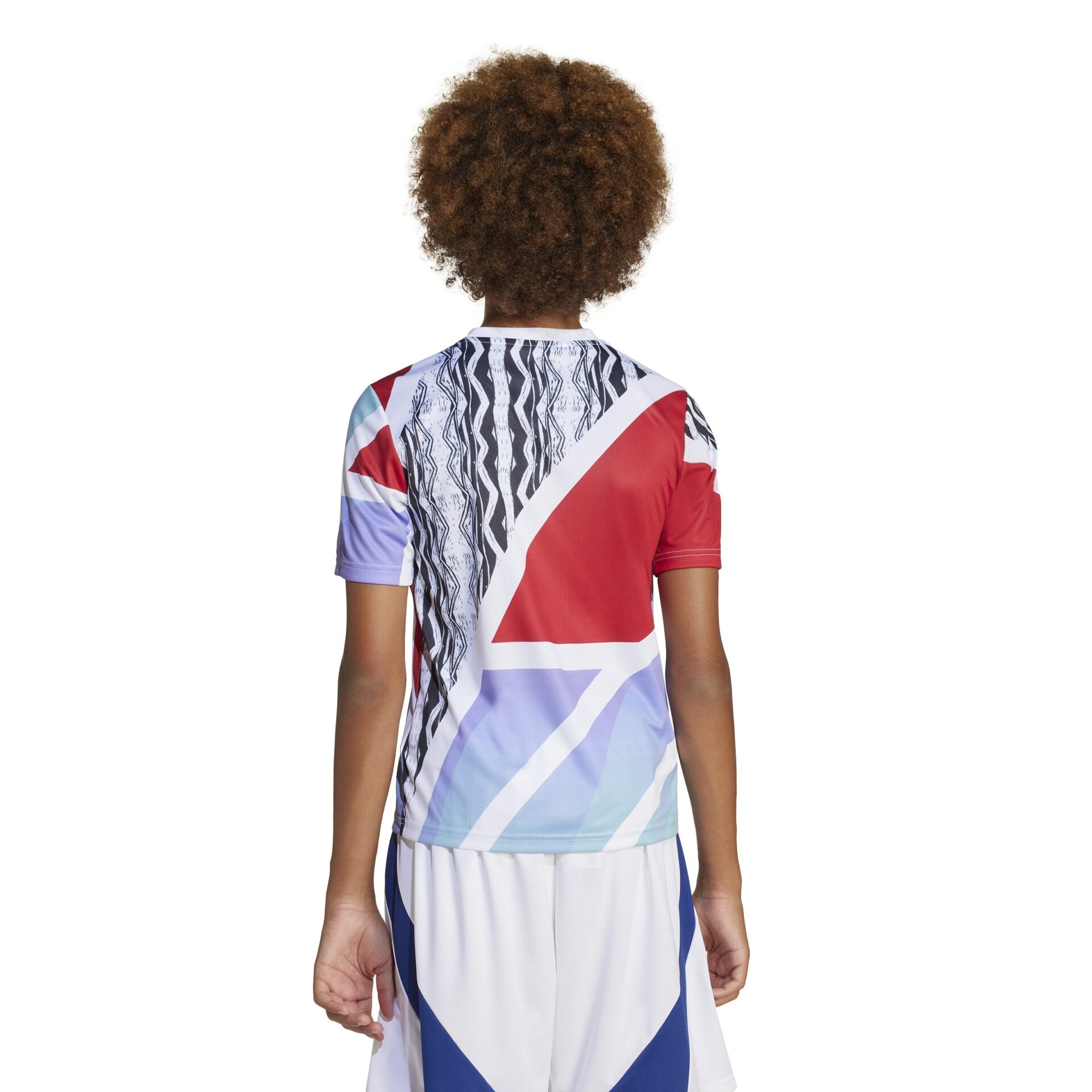 Riprendendo elementi di design dalle maglie Home, Away e Third 24/25 dell’Arsenal, questa maglia prepartita adidas ti assicura un look che non passa inosservato. ร la versione junior del modello indossato dai giocatori durante il riscaldamento prima del calcio d’inizio e garantisce il massimo comfort grazie al morbido tessuto con tecnologia antiumiditร AEROREADY. Lo stemma della squadra ricamato completa alla perfezione il look.