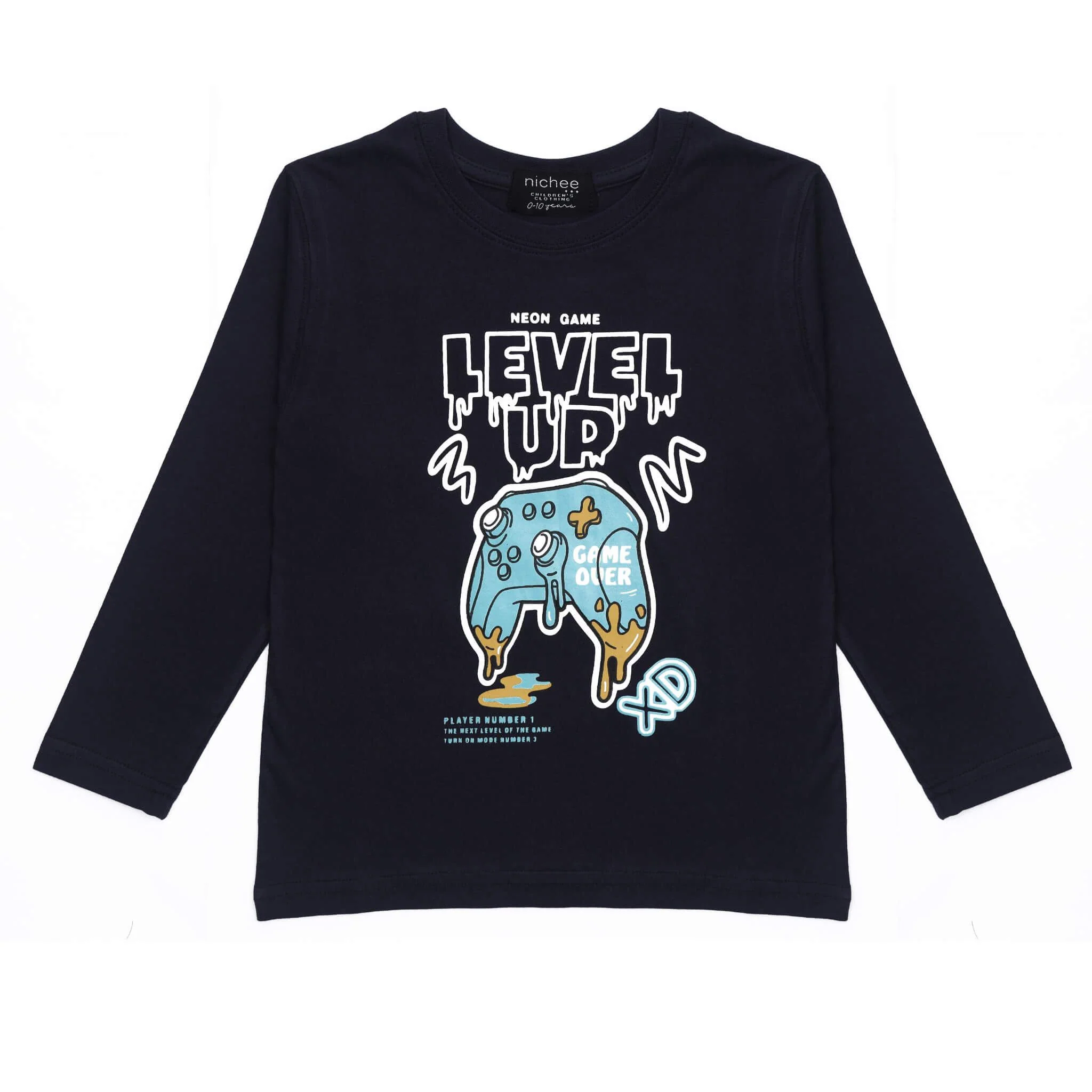 Per piccoli gamer che vivono la passione anche fuori dallo schermo: questa maglietta blu navy con stampa controller è perfetta per chi ama i videogiochi e vuole portare il proprio stile ovunque.