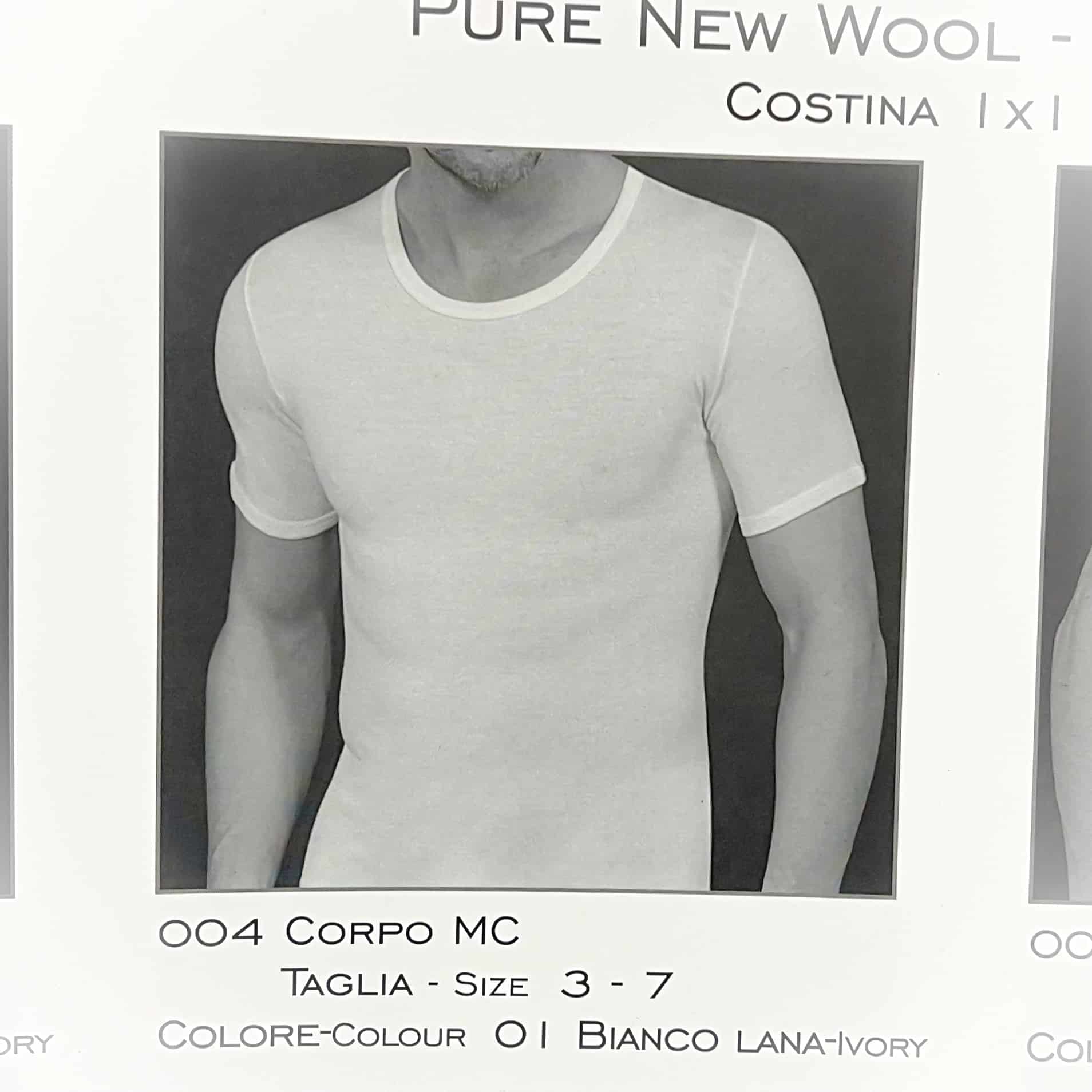Maglietta uomo in pura lana vergine. Modello mezza manica girocollo. Sulla tua pelle tutta la naturalezza della lana. MAGLIETTA GIROCOLLO MANICA CORTA LAVABILE IN LAVATRICE COSTINA 1X1 PURA LANA VERGINE LEGGERA IDROREPELLENTE COMPOSIZIONE : 100% LANA TESSUTO : 100% Lana