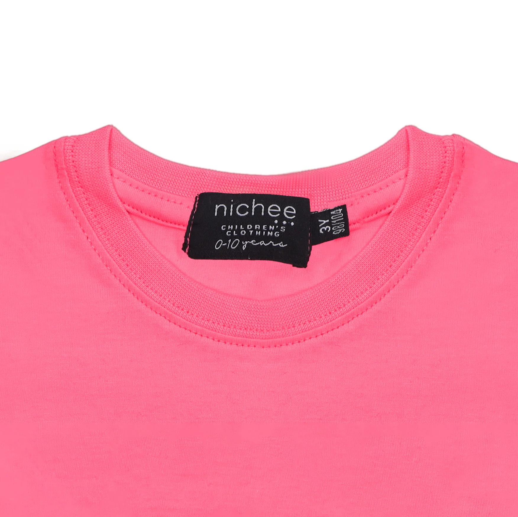 Per piccole amanti dei gatti che sognano coccole e fusa: questa maglietta rosa shock con adorabile stampa gatto è perfetta per neonata e bambina che amano i felini.