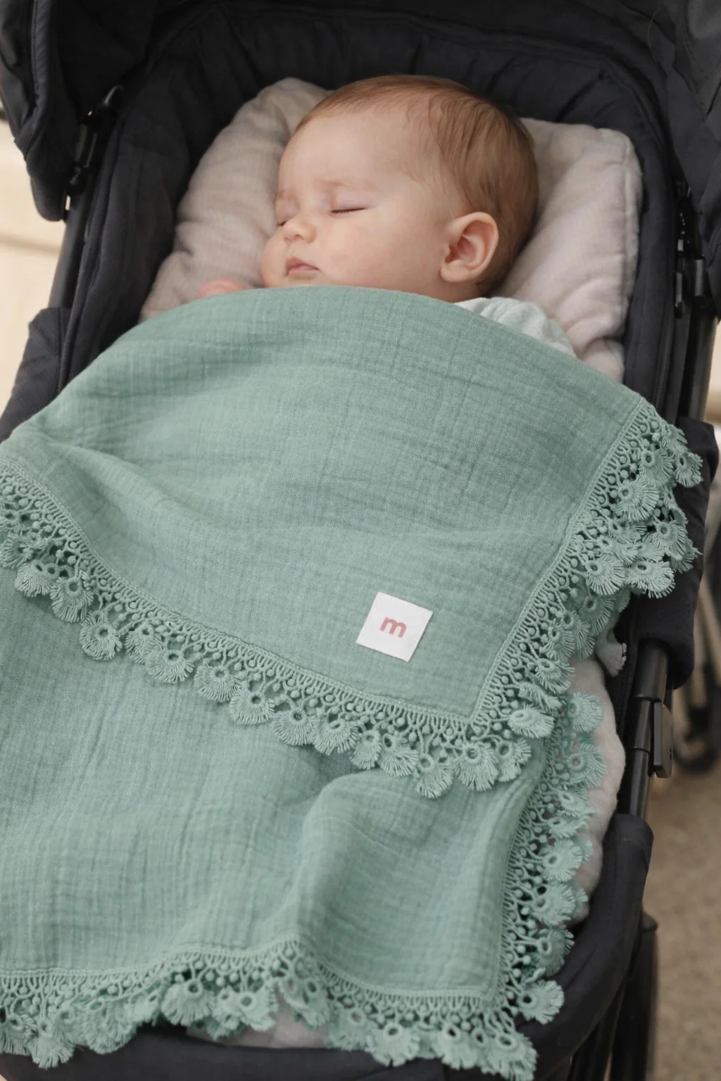 Mussola in 100% puro cotone naturale, morbida, traspirante e multiuso.