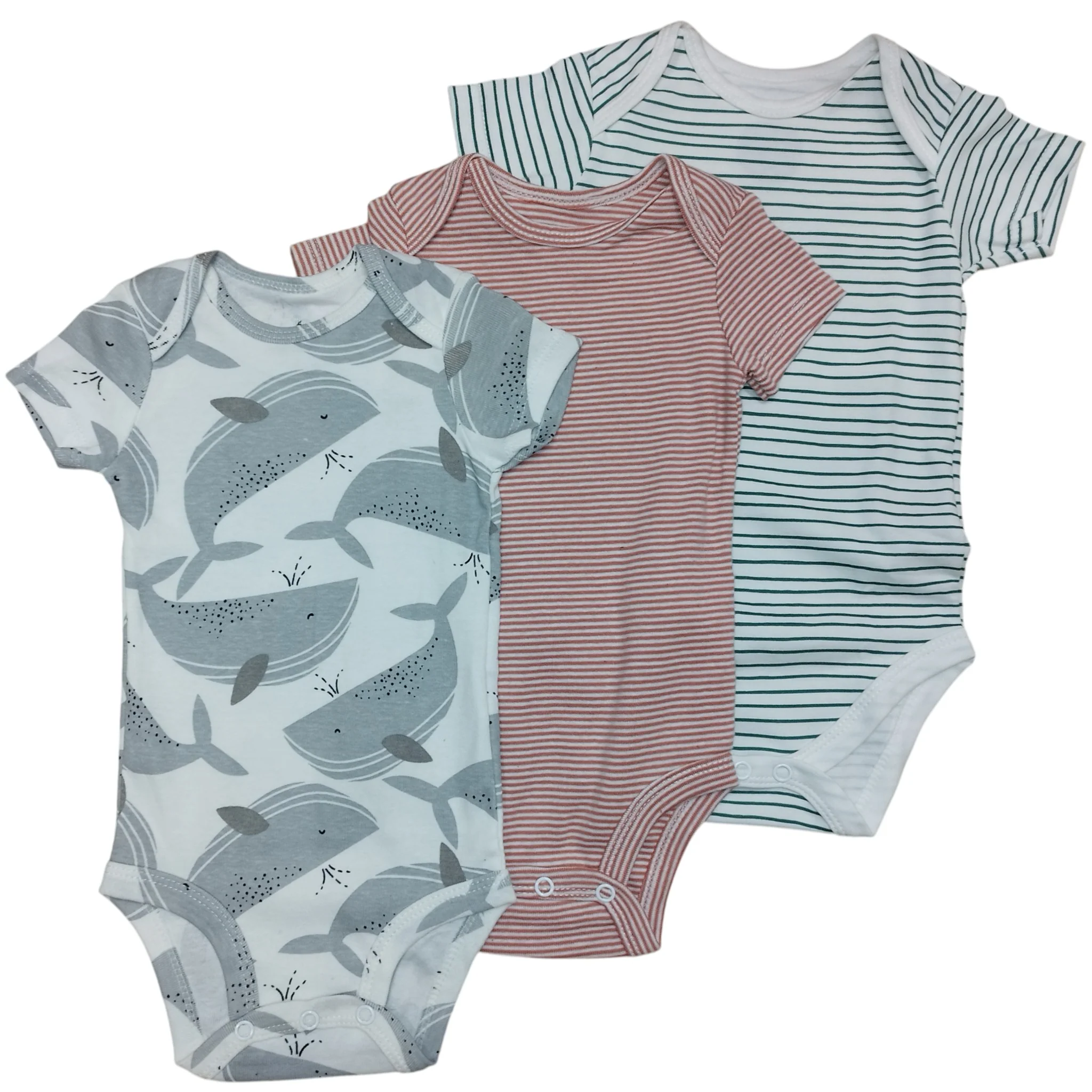 Pack 3 Body Neonato Manica Corta Balene e Righe 3-24 Mesi
