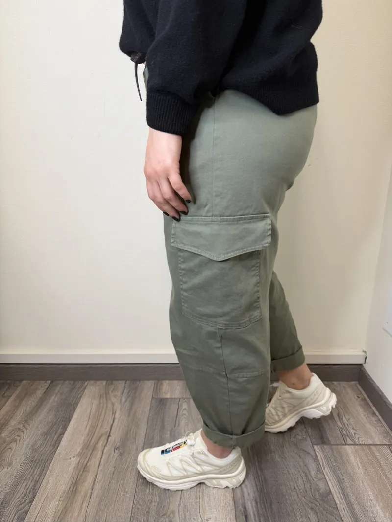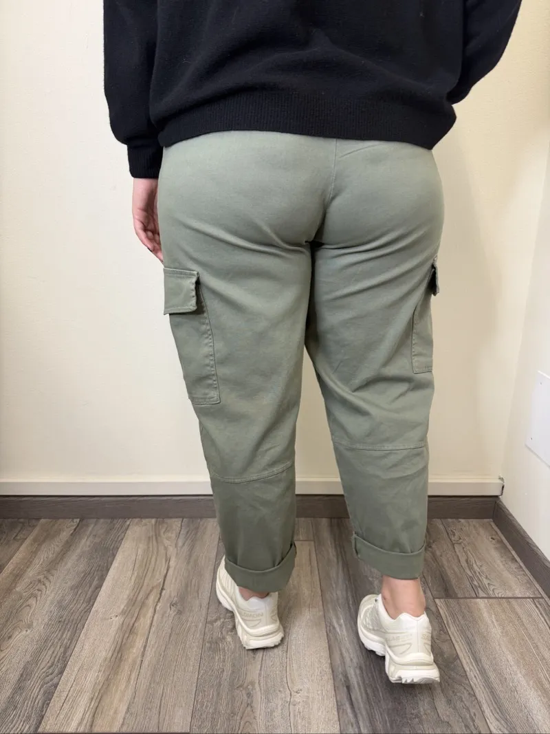 pantalone cargo, fit morbido e elastico dietro