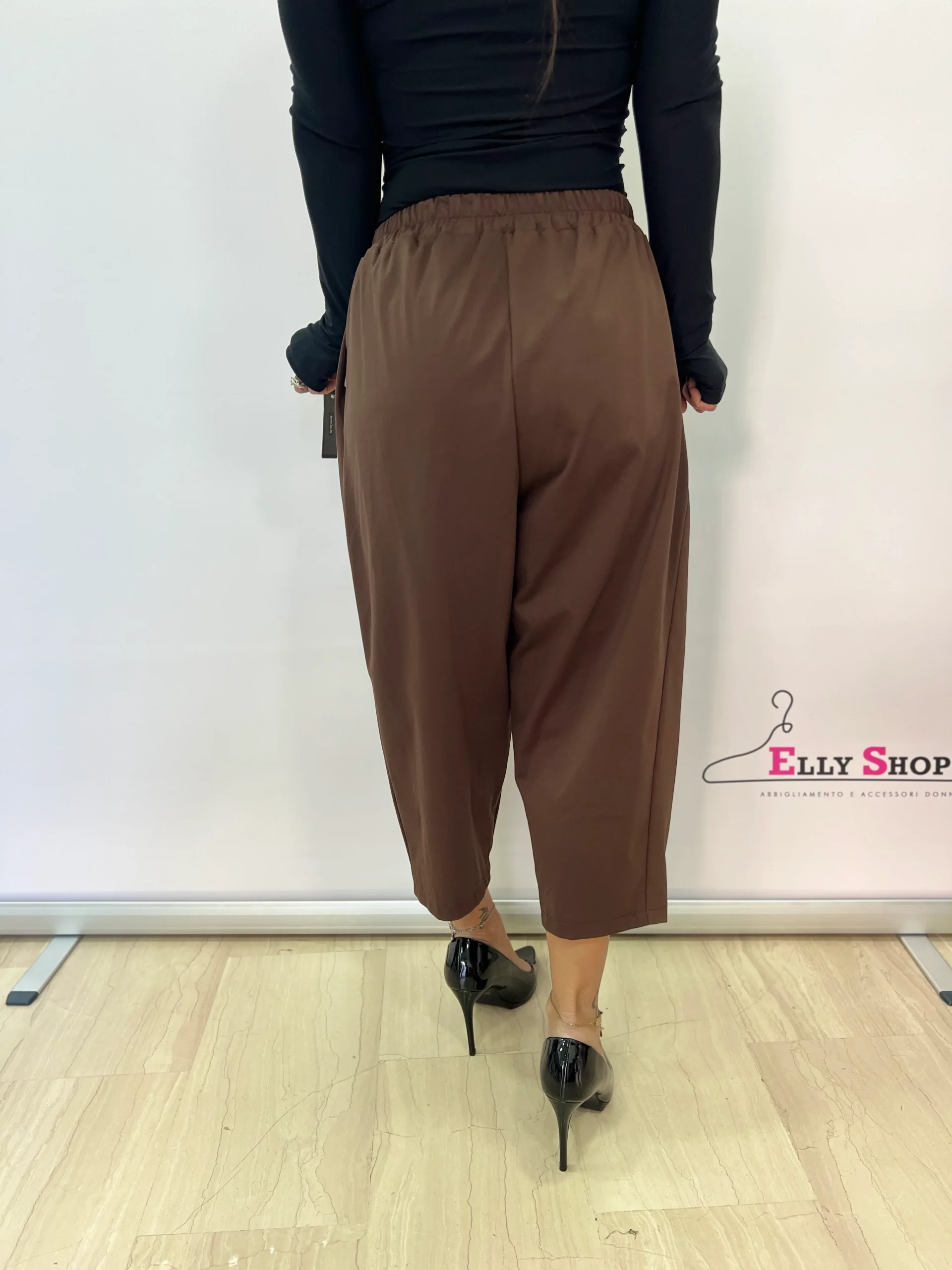 Pantaloni donna con pannello incrociato Pantaloni dal design originale e contemporaneo, caratterizzati da un elegante pannello frontale incrociato con bottone decorativo che dona un effetto sofisticato e ricercato. Il modello unisce comfort e stile grazie alla vita elasticizzata e alla linea morbida, perfetta per valorizzare diverse fisicità. Ideali per creare look moderni e versatili, si […]