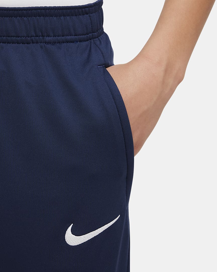 Pantaloni Paris Saint-Germain Strike JUNIOR MIGLIORA IL TUO ALLENAMENTO. I pantaloni Paris Saint-Germain Strike sfoggiano dettagli di design specificamente pensati per le stelle nascenti del calcio. Il fit essenziale non ostacola le tue azioni, mentre la tecnologia traspirante offre controllo e freschezza, consentendoti di perfezionare le tue abilità. Pelle asciutta La tecnologia Nike Dri-FIT allontana il sudore per favorirne una rapida evaporazione e mantenere la pelle asciutta per un comfort eccellente. Stile versatile Zip sulla parte inferiore della gamba per cambi rapidi senza togliere le scarpe. Spazio sicuro Le tasche con zip sono ideali per i tuoi oggetti indispensabili. Dettagli…
