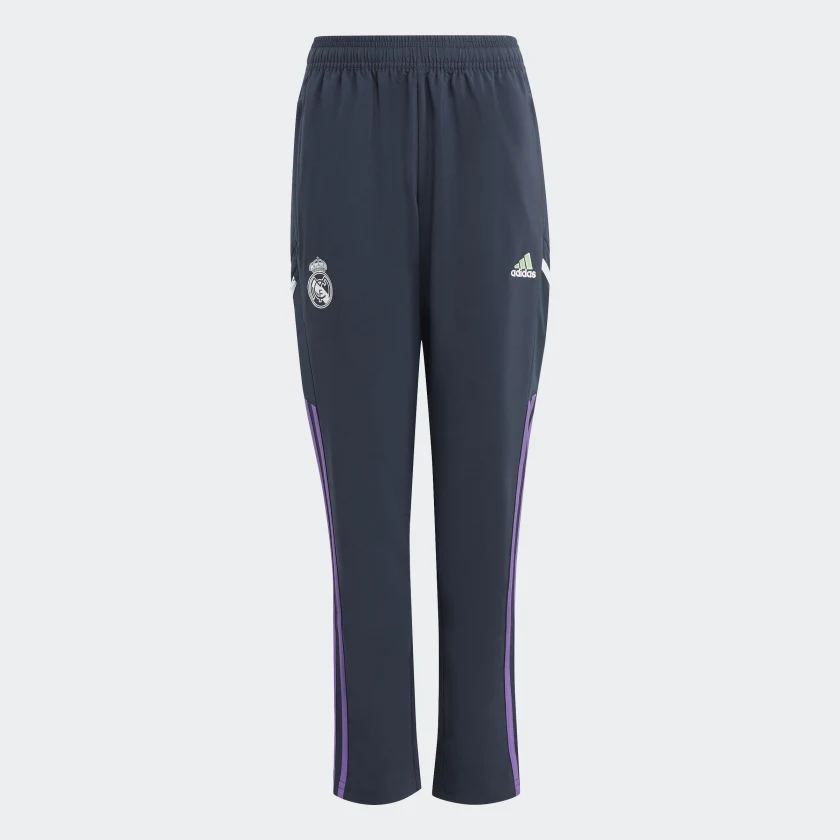 Pantaloni rappresentanza REAL MADRID Junior LA VERSIONE JUNIOR DEL MODELLO DEI BLANCOS REALIZZATA CON MATERIALI RICICLATI. Un look che è sinonimo di successo. I giocatori del Real Madrid indossano pantaloni da calcio adidas come questi quando viaggiano per le trasferte e parlano con i giornalisti. La tecnologia AEROREADY aiuta a mantenere la pelle fresca e asciutta in ogni circostanza, mentre le tasche con zip tengono al sicuro il telefono, i biglietti e gli altri oggetti essenziali. Le zip alle caviglie consentono di vestirti con praticità e lo stemma del club ricamato mostra a tutti per chi tifi. Questo prodotto contiene…