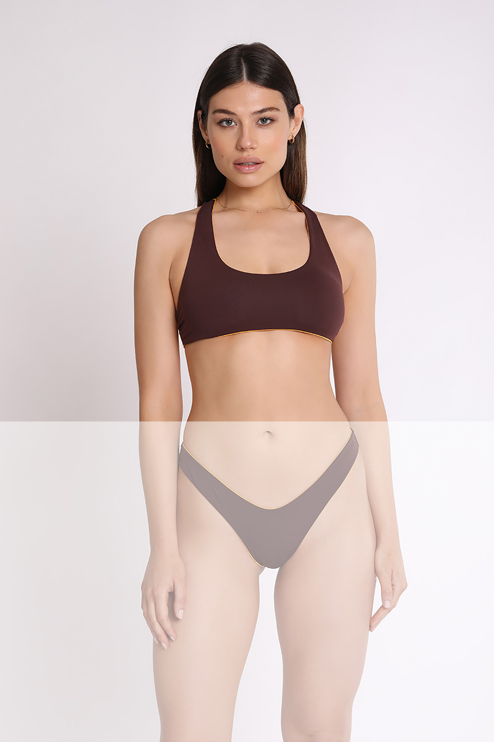 Tank bikini top in microfiber, seamless, with Olympic back neckline. Fully reversible and wearable on both sides.