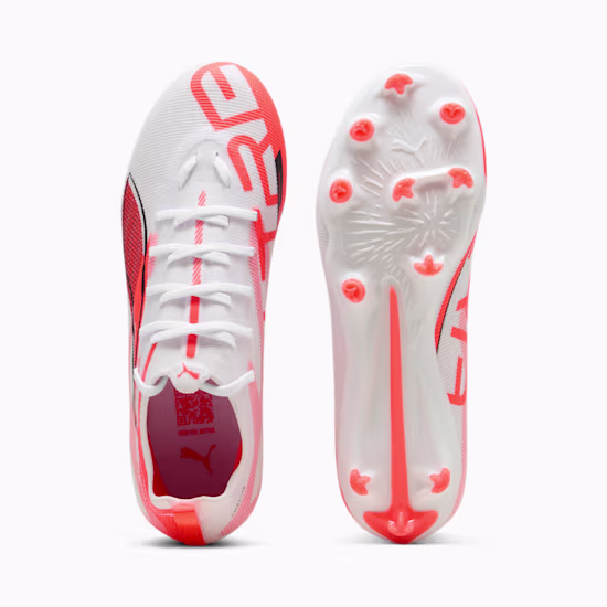 Scarpa calcio ULTRA 5 PRO FG/AG PUMA White DESCRIZIONE Quanto รจ veloce l’ULTRA 5 PRO? Allacciate le cinture e liberate la vostra velocitร con l’ultima innovazione di PUMA. Progettate per un’accelerazione rapida e un controllo preciso, queste scarpe da calcio presentano una tomaia in mesh leggero, il supporto PWRTAPE e la suola SPEEDSYSTEM. Dominate il campo con una trazione e un’agilitร senza pari. Preparatevi a giocare a tutto gas. CARATTERISTICHE + VANTAGGI ACCELERATION: la suola SPEEDSYSTEM CARBON di PUMA combina il materiale elastico in fibra di carbonio per una rapida propulsione con un innovativo posizionamento e orientamento dei tacchetti per…