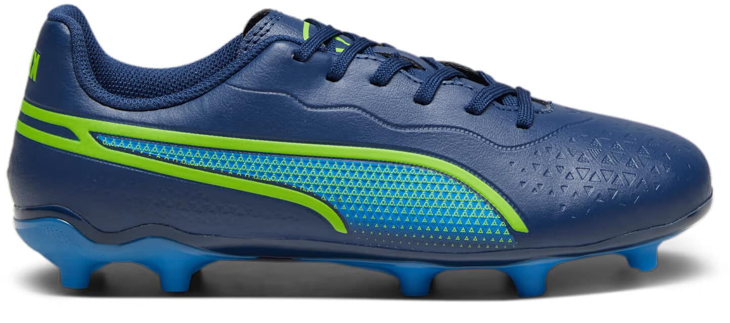 Scarpe calcio PUMA KING MATCH FG/AG Junior Il controllo non รจ mai stato cosรฌ comodo. Un’icona che ha attraversato le generazioni. KING ritorna con audaci aggiornamenti del design e materiali innovativi che funzionano meglio, per il giocatore e per il pianeta. Il materiale della tomaia รจ una morbidissima microfibra realizzata con materiali riciclati per ridurre l’impatto ambientale migliorando al contempo il tocco, il comfort e la resistenza all’allungamento. La nuova suola presenta punte coniche in modo da avere tanto controllo sui tuoi movimenti quanto sulla palla. ร un nuovissimo KING per una nuova generazione: 100% KING, 0% pelle. Suola Scarpe…