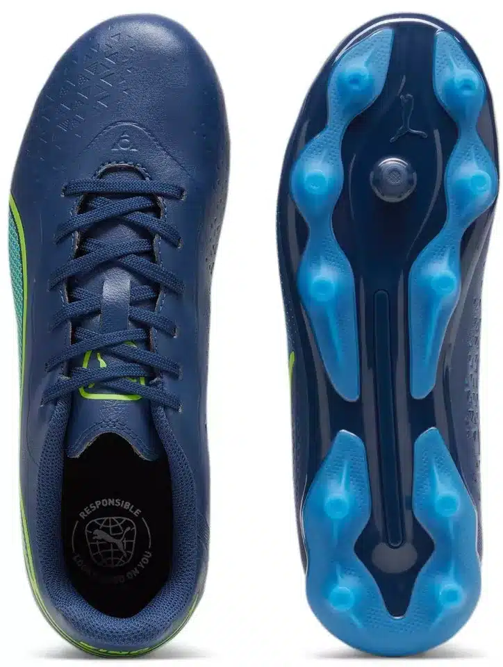 Il controllo non รจ mai stato cosรฌ comodo. Un’icona che ha attraversato le generazioni. KING ritorna con audaci aggiornamenti del design e materiali innovativi che funzionano meglio, per il giocatore e per il pianeta. Il materiale della tomaia รจ una morbidissima microfibra realizzata con materiali riciclati per ridurre l’impatto ambientale migliorando al contempo il tocco, il comfort e la resistenza all’allungamento. La nuova suola presenta punte coniche in modo da avere tanto controllo sui tuoi movimenti quanto sulla palla. ร un nuovissimo KING per una nuova generazione: 100% KING, 0% pelle.
