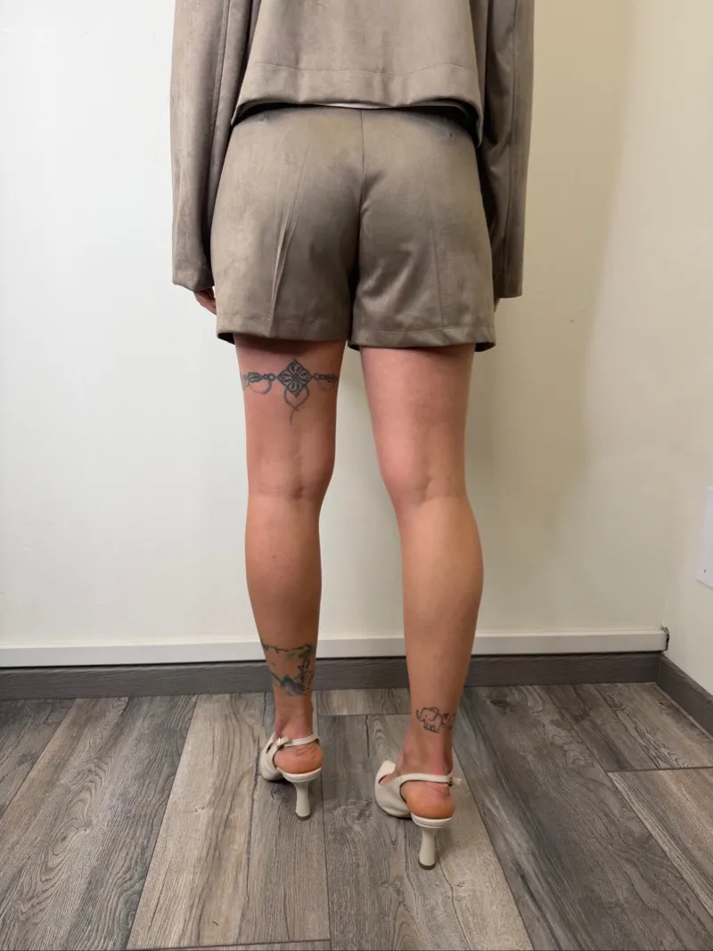 Short in eco dinette,chiusura con zip e bottone