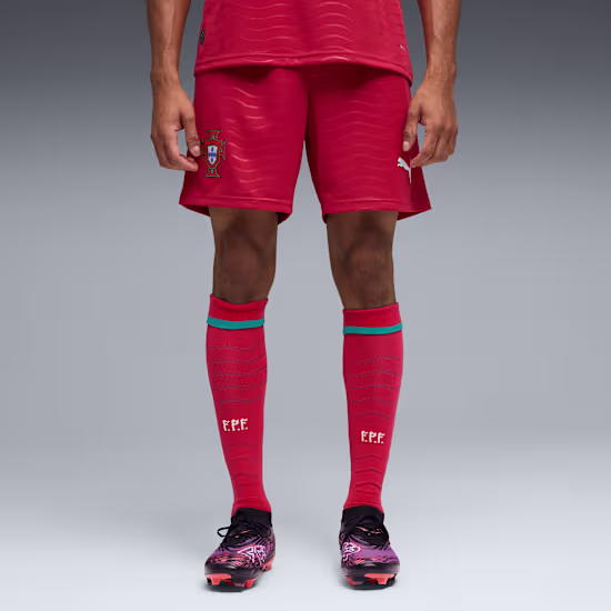 Short Home PORTOGALLO 25/26 Puma Descrizione prodotto Questi pantaloncini da calcio sono ispirati a quelli indossati dai giocatori. Realizzati con tessuti leggeri e traspiranti, offrono il massimo comfort e libertà di movimento in campo. Combinano funzionalità e stile, garantendo una vestibilità perfetta per l’azione della partita. Colore: Club Red-Green Lagoon Funzionalità GESTIONE DELL’UMIDITÀ: la tecnologia dryCELL di PUMA assorbe l’umidità e il sudore e ti mantiene sempre asciutto e a tuo agio Nell’ambito del programma RE:FIBRE, questo capo è realizzato con almeno il 95% di materiale riciclato proveniente da rifiuti tessili e altri materiali usati Dettagli Short Home PORTOGALLO 25/26…