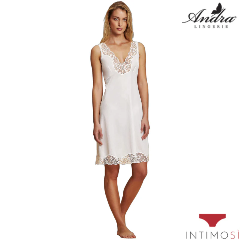 Sottoveste classica con inserti in pizzo su scollo e spalline larghe | Andra 80
