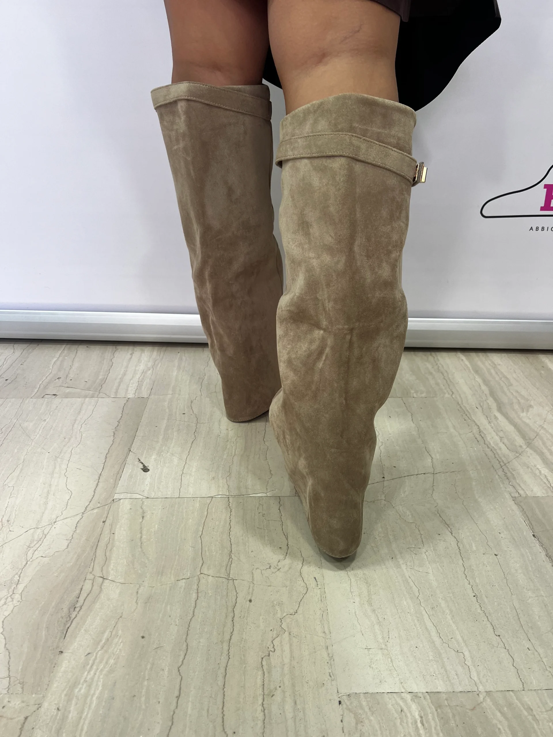 Questi eleganti stivali alti in tonalitร beige si distinguono per il loro design raffinato e contemporaneo. Realizzati in morbido materiale effetto scamosciato, offrono una vestibilitร comoda e una linea slanciata che valorizza la gamba. Il tacco largo e stabile dona equilibrio e comfort, rendendoli perfetti per essere indossati tutto il giorno. Ideali per completare look autunnali e invernali con gonne, abiti o pantaloni skinny. Disponibili nei classici colori beige e marrone, rappresentano un must-have per chi ama uno stile sofisticato e versatile.