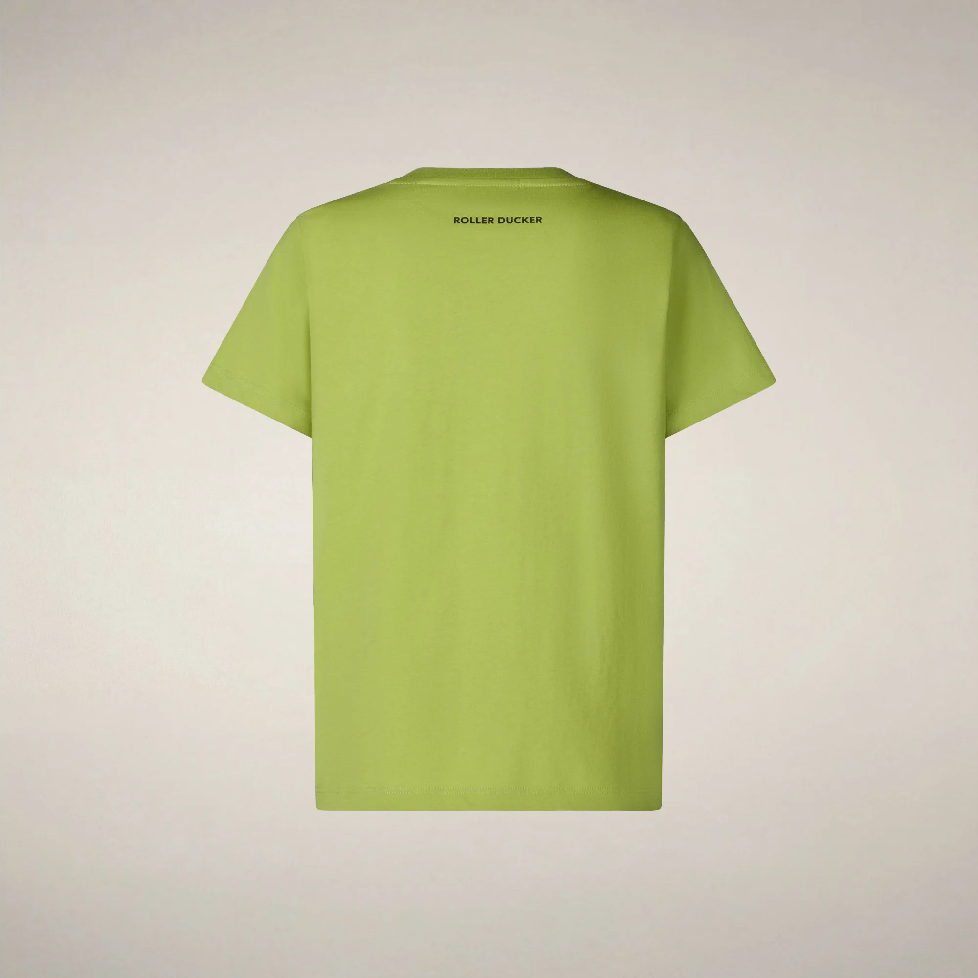La T-shirt unisex bambino modello Ashwine porta un tocco di allegria nel guardaroba dei piccoli Duckers con il motivo stampato sul petto. Realizzata in morbido cotone biologico, ha una classica linea girocollo con maniche corte. Ogni variante colore abbina un logo diverso di ispirazione sportiva, ripreso dal lettering sulla schiena.