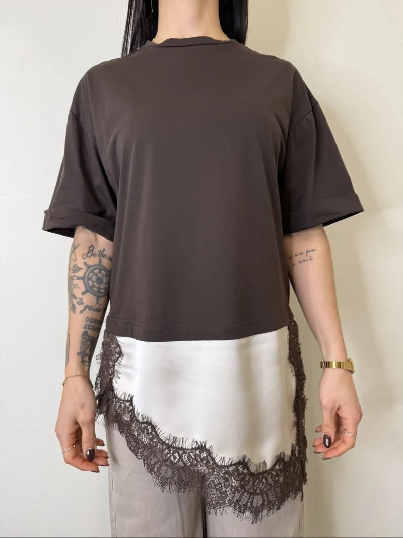 T SHIRT MORO CON SOTTOVESTE BEIGE PIZZO MORO MOTEL