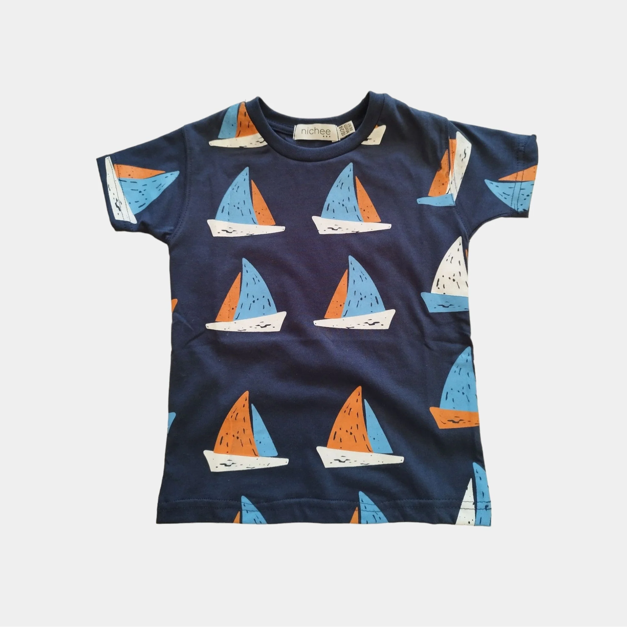 T-shirt Neonato Blu Navy Stampa Vele Colorate 6M-4 Anni