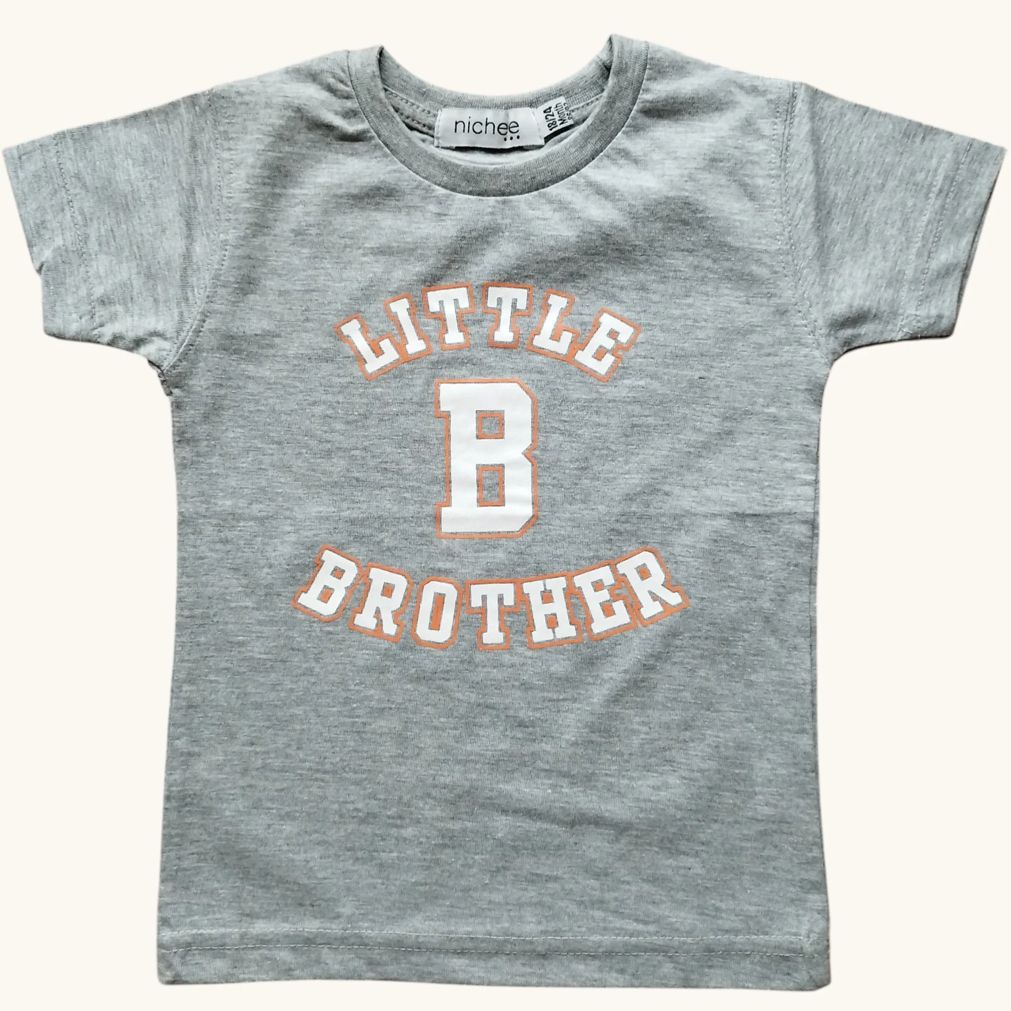 Per piccoli fratellini orgogliosi del loro ruolo: questa t-shirt grigia con scritta “Little Brother” è perfetta per celebrare il legame speciale tra fratelli con stile e dolcezza.
