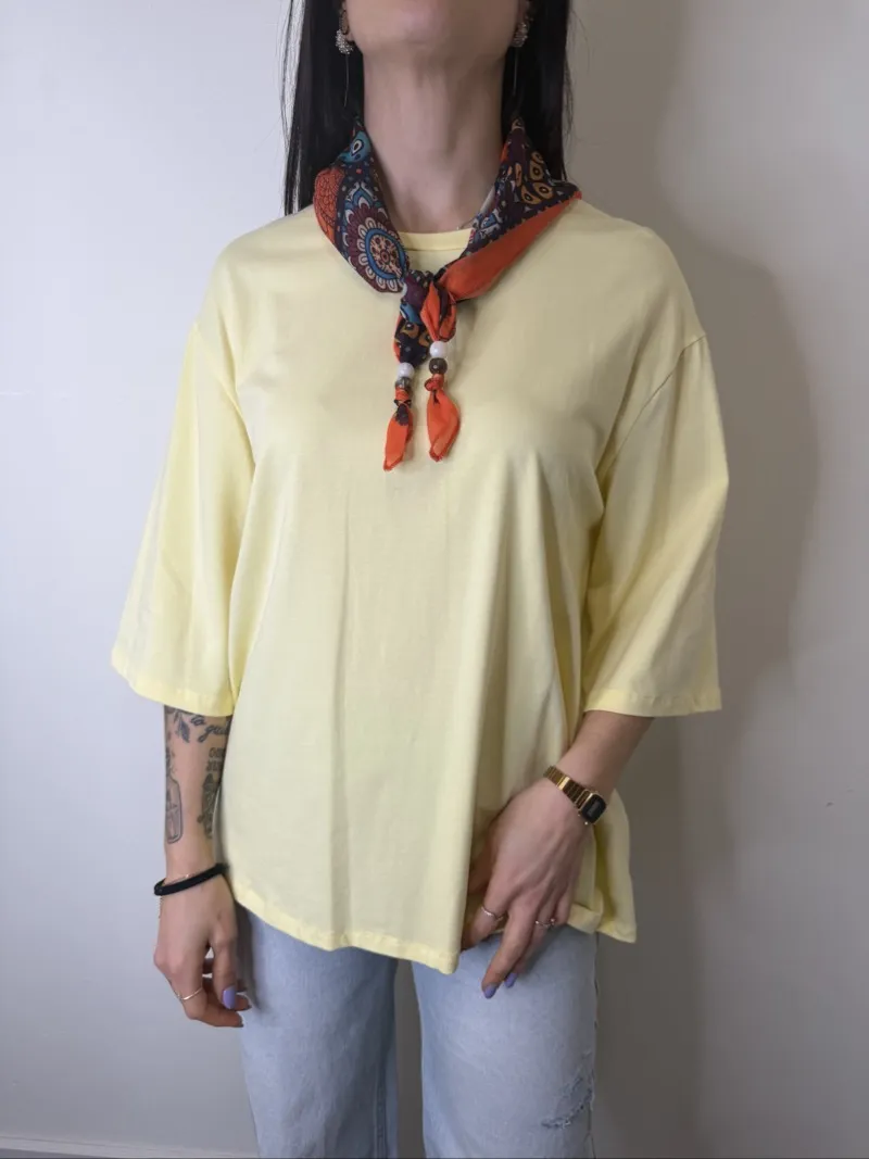 T SHIRT OVER GIALLA + FOULARD SUSYMIX