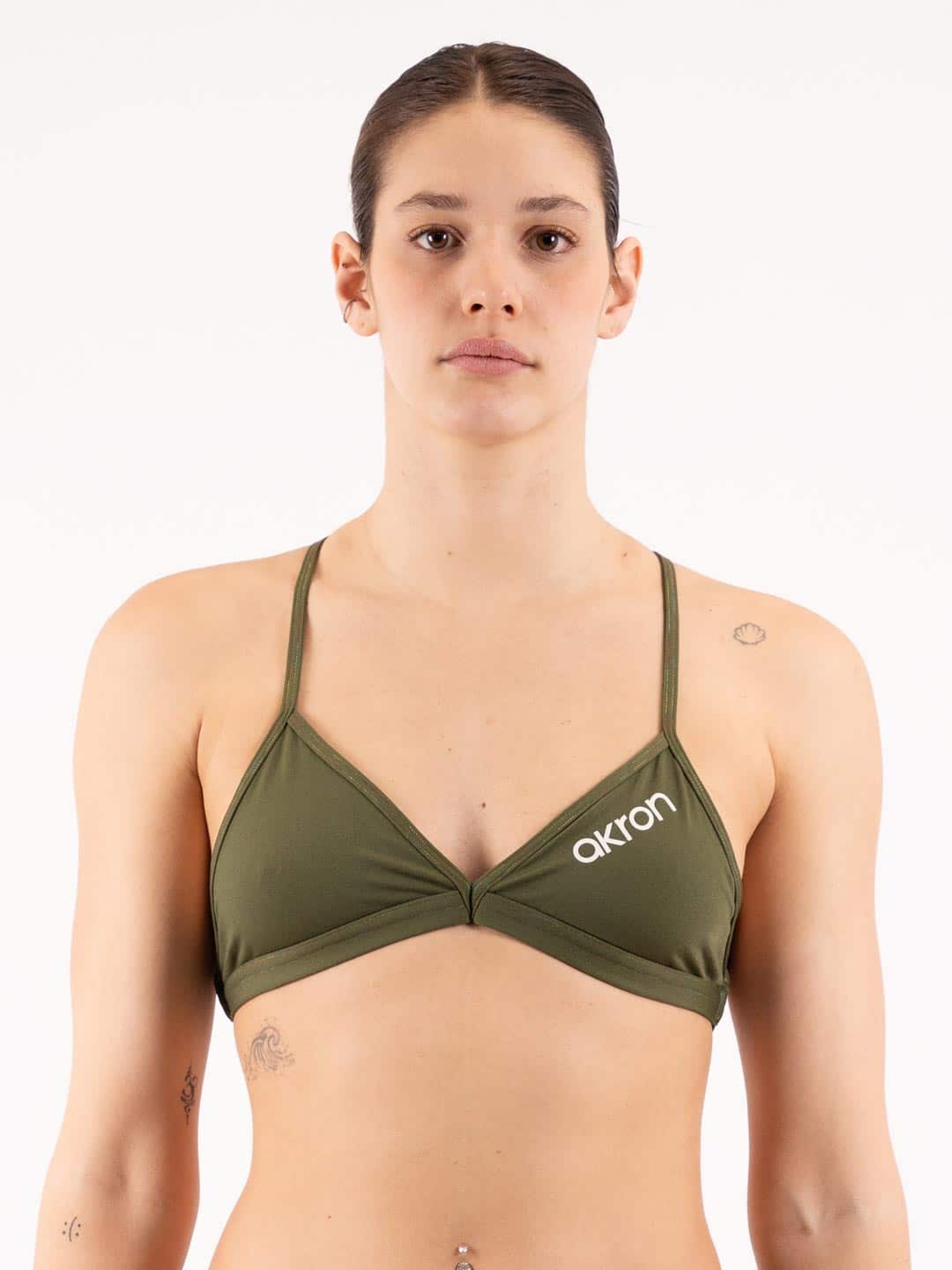Top donna bikini Ania Akron Ecology per l’allenamento in piscina, resistente al cloro, protezione UV eccellente, asciugatura rapida, eccellente traspirabilità.