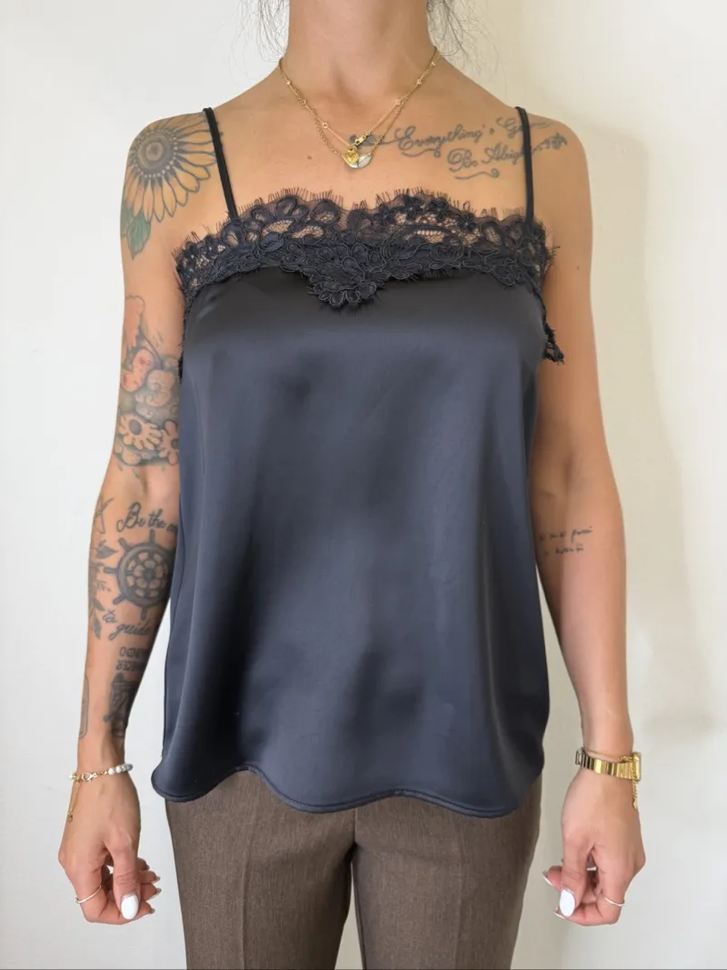 TOP SATIN PIZZO NERO IMPERIAL