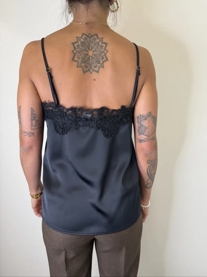 top satin con spallina regolabile e pizzo imperial