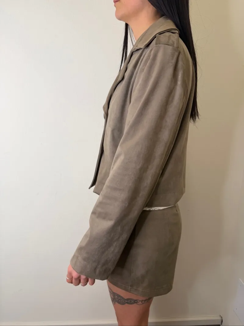 Trench Crop in Ecodainetto. La modella è alta 1,70cm e indossa la taglia S