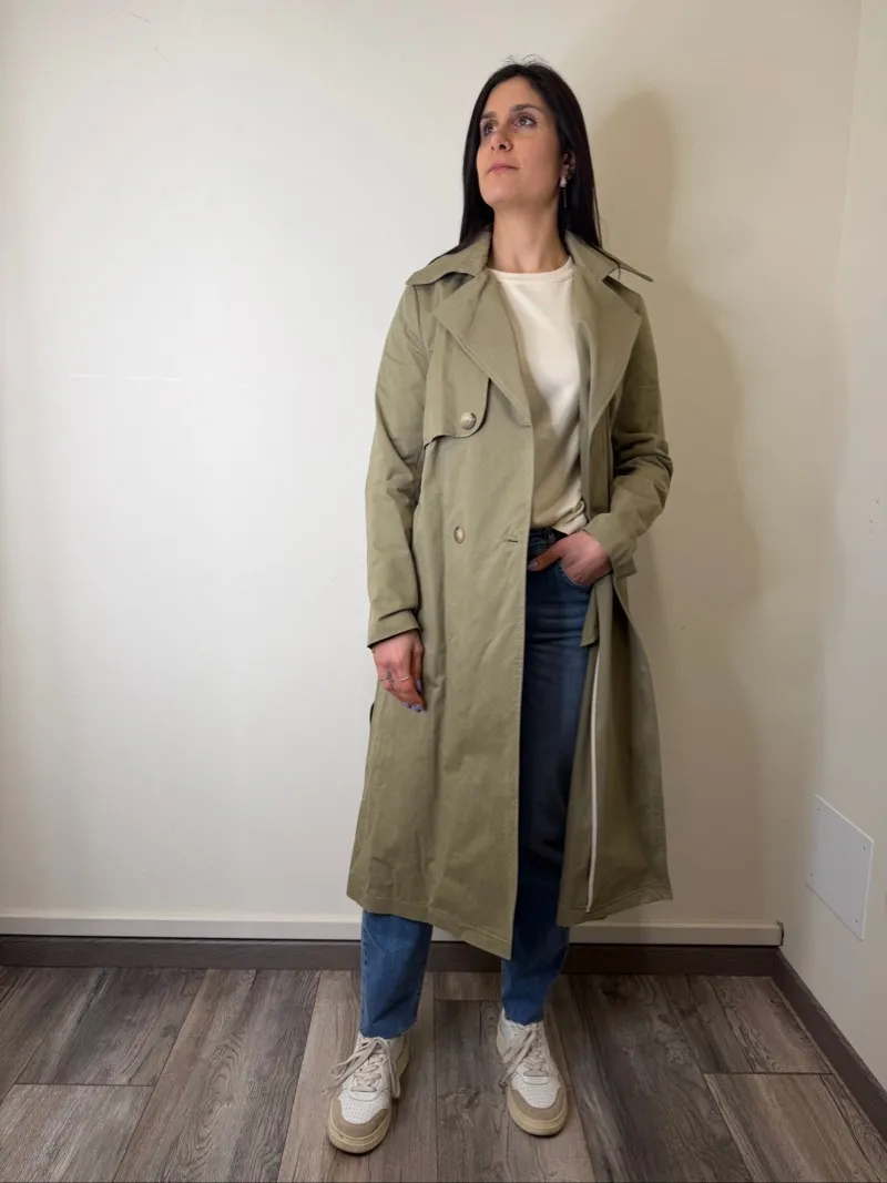 TRENCH LUNGO DOPPIO PETTO VERDE MILITARE SUSYMIX