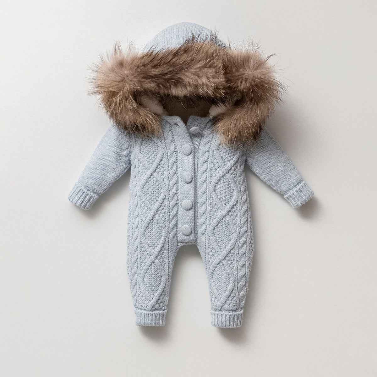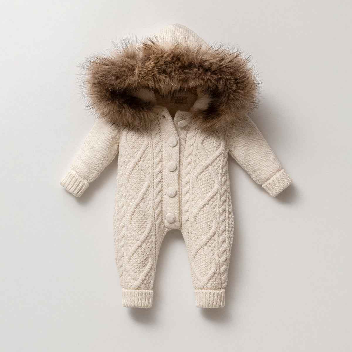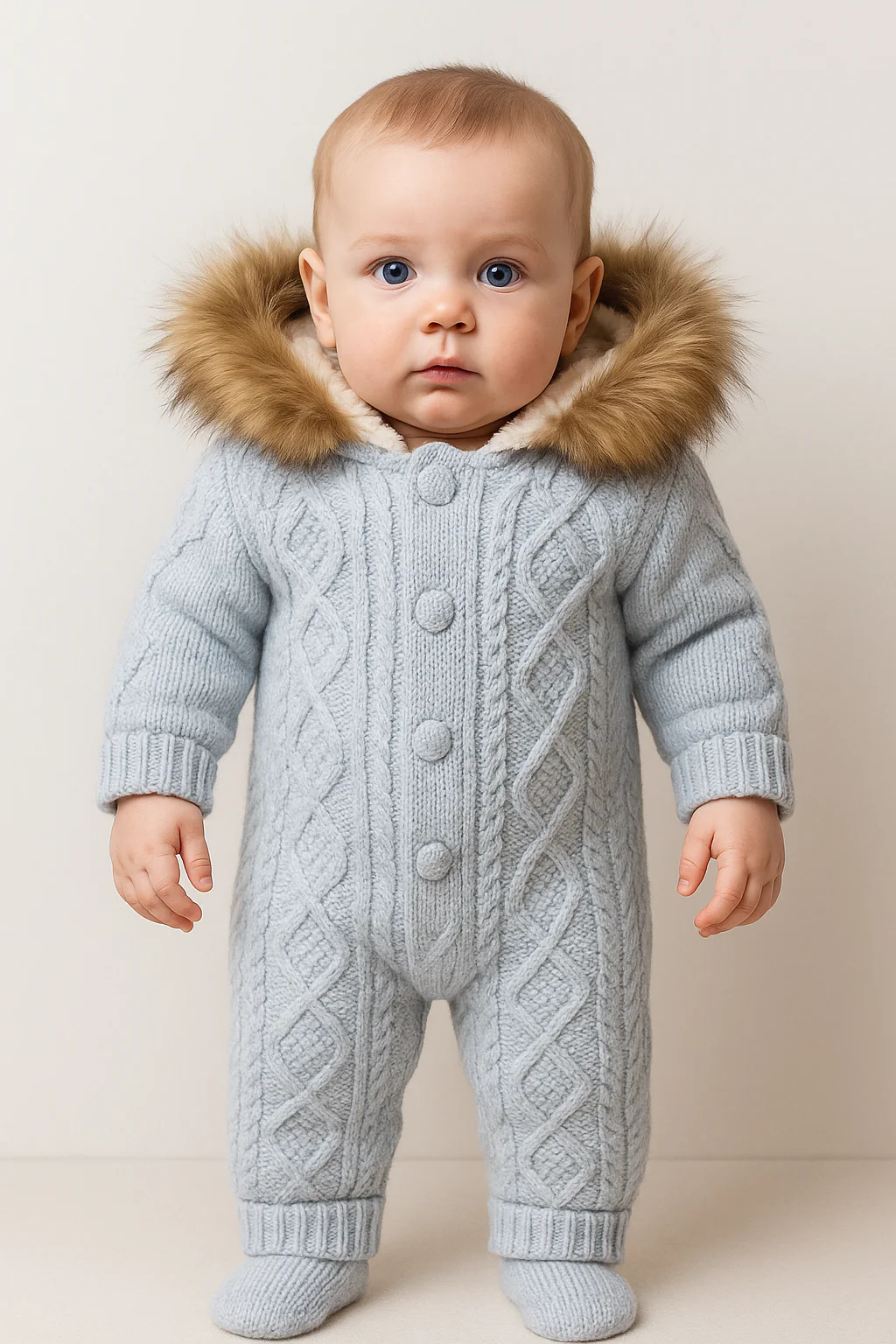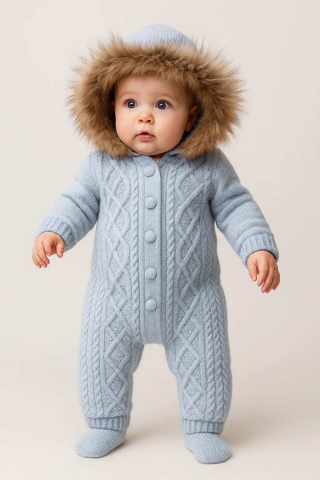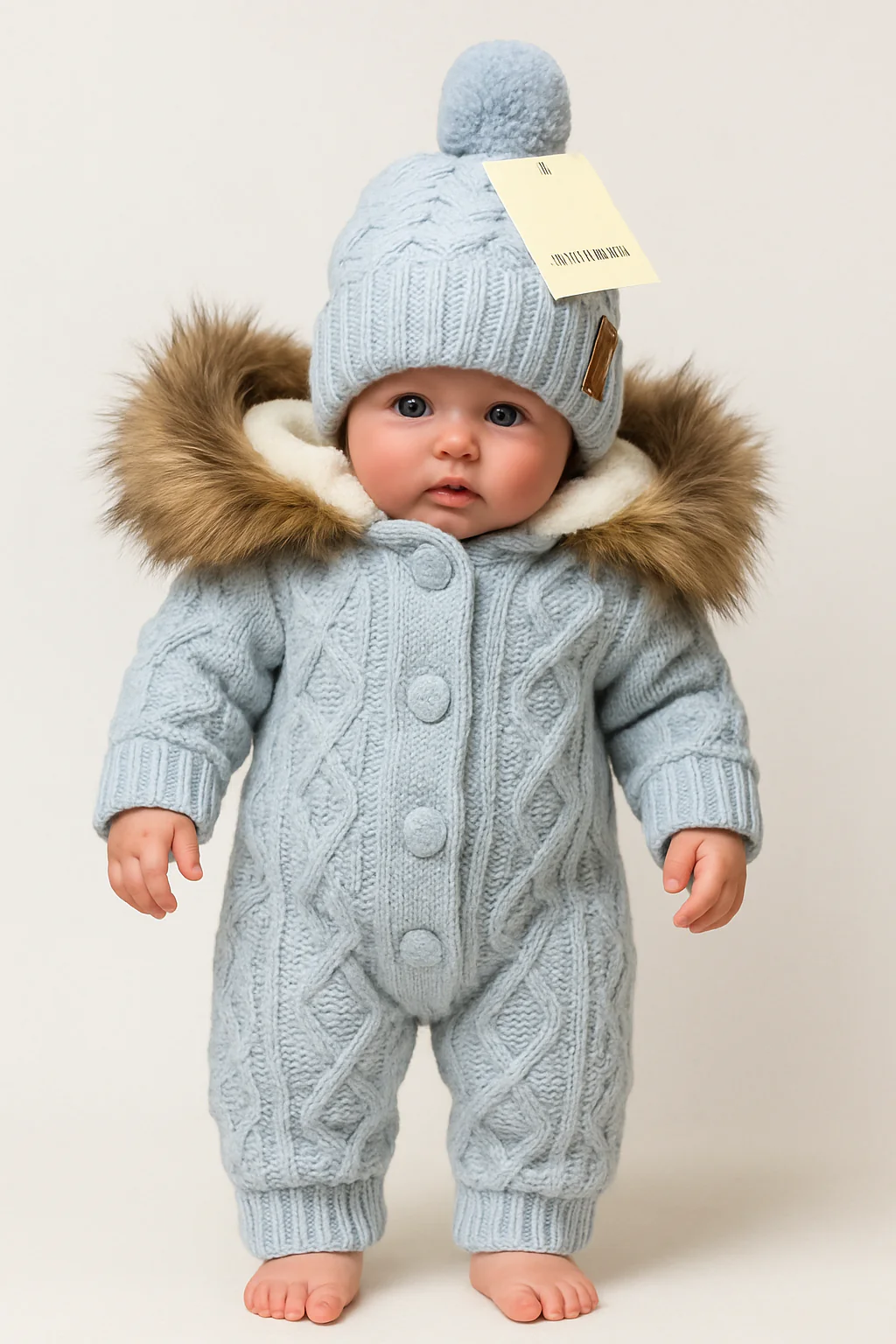 โ๏ธ Tuta in lana con cappuccio e pelliccia Neonatoโ๏ธ