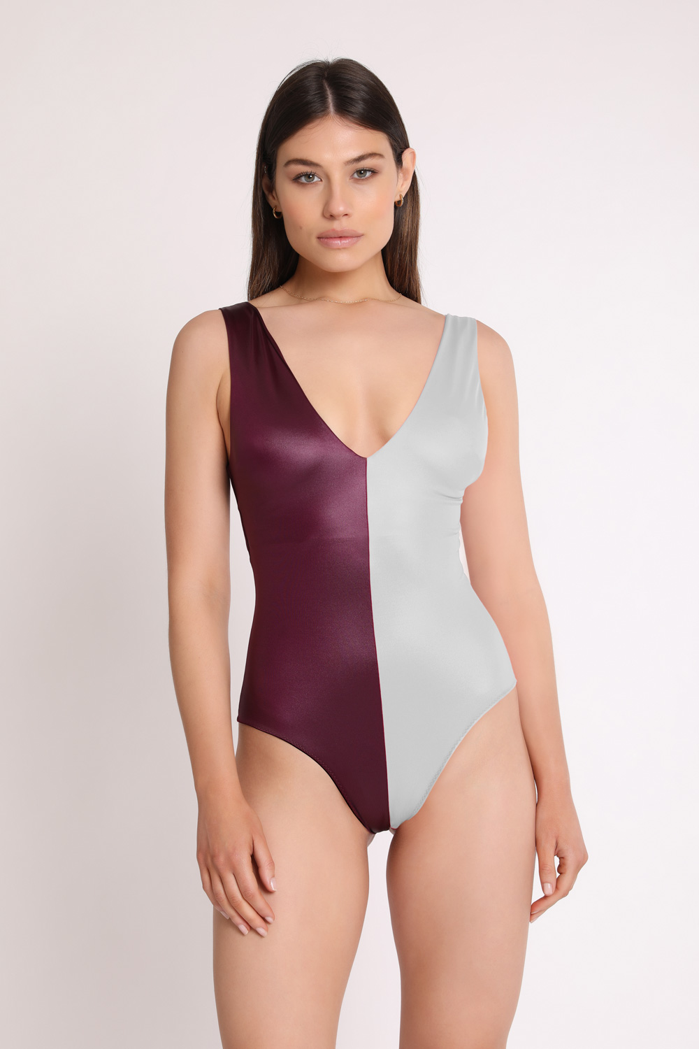 V-neck Lycra bodysuit. Two-Tone Collection