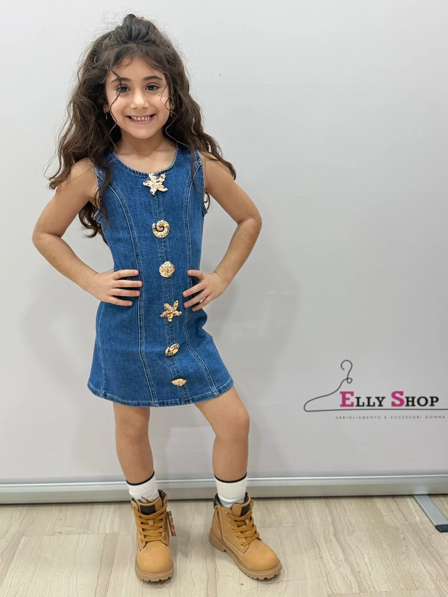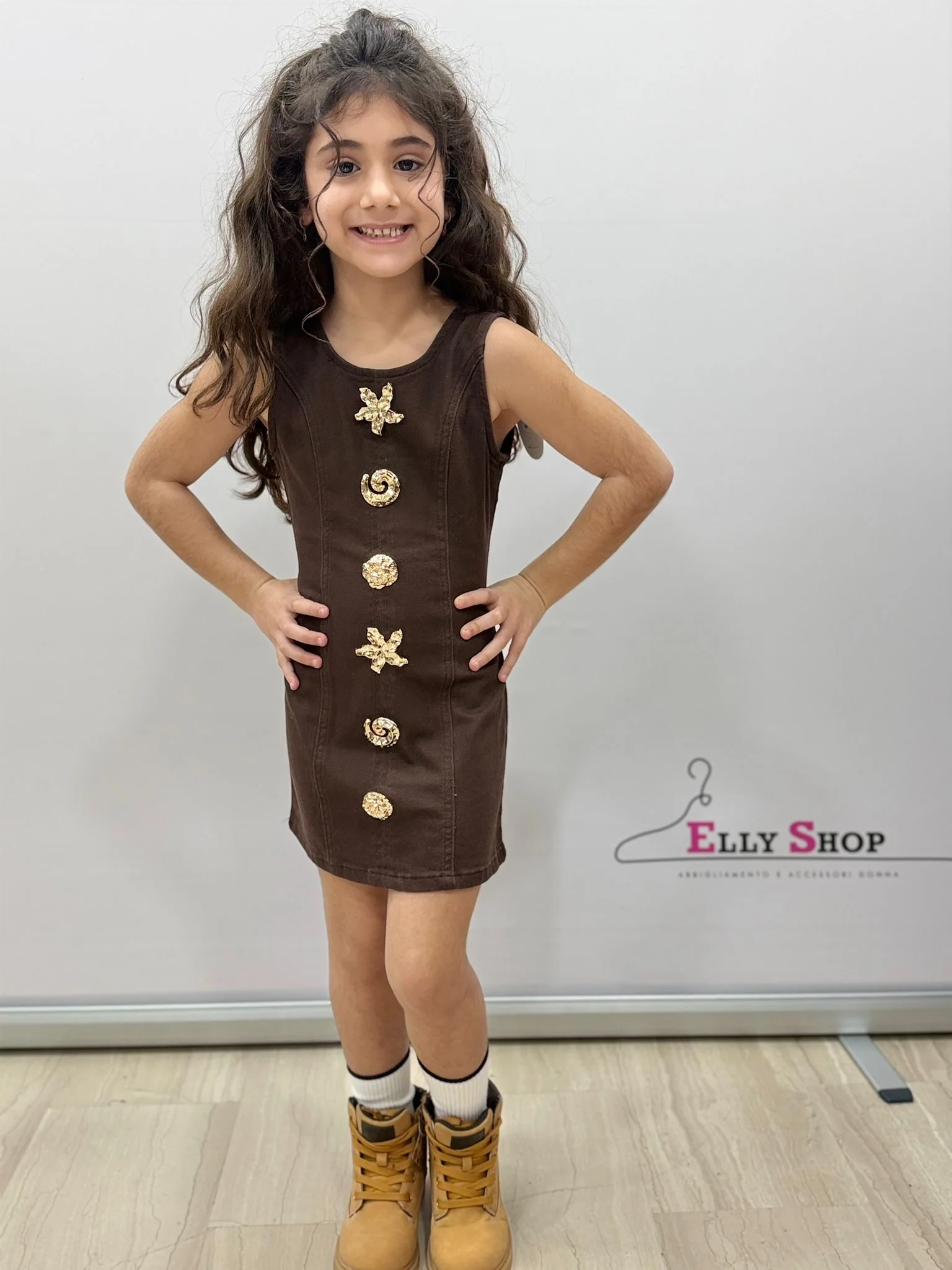 Un vestito dal carattere deciso e moderno, perfetto per bambine che amano distinguersi con stile. Questo modello smanicato conquista per il suo design lineare impreziosito da eleganti applicazioni decorative effetto gioiello sul davanti, che donano luce e originalità al capo. Disponibile nella versione denim blu e nella raffinata variante marrone, è ideale per look casual chic, feste, compleanni o occasioni speciali. La vestibilità regolare valorizza la silhouette garantendo comfort e libertà di movimento durante tutta la giornata.